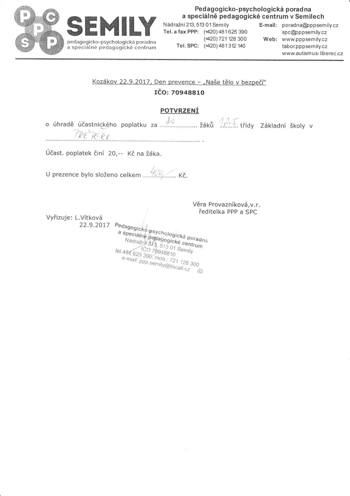 Po roce jsme využili opět nabídku Pedagogicko-psychologické poradny a speciálně pedagogického centra v Semilech zúčastnit se Dne prevence na vrcholu Kozákova.
