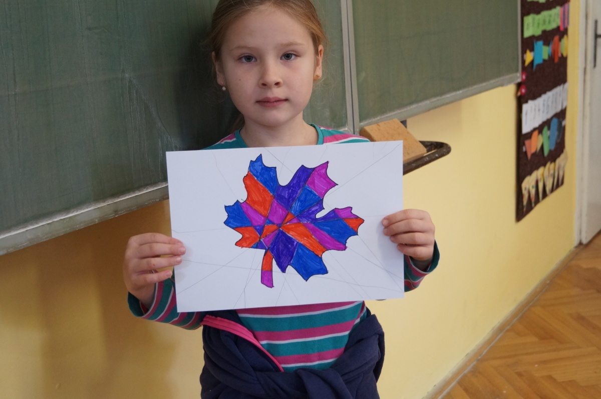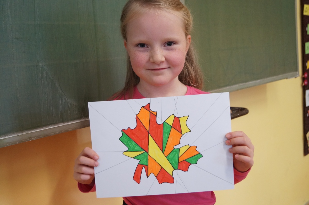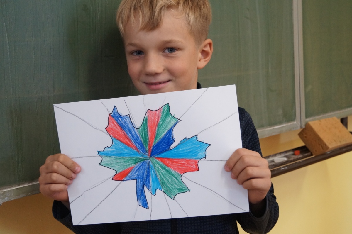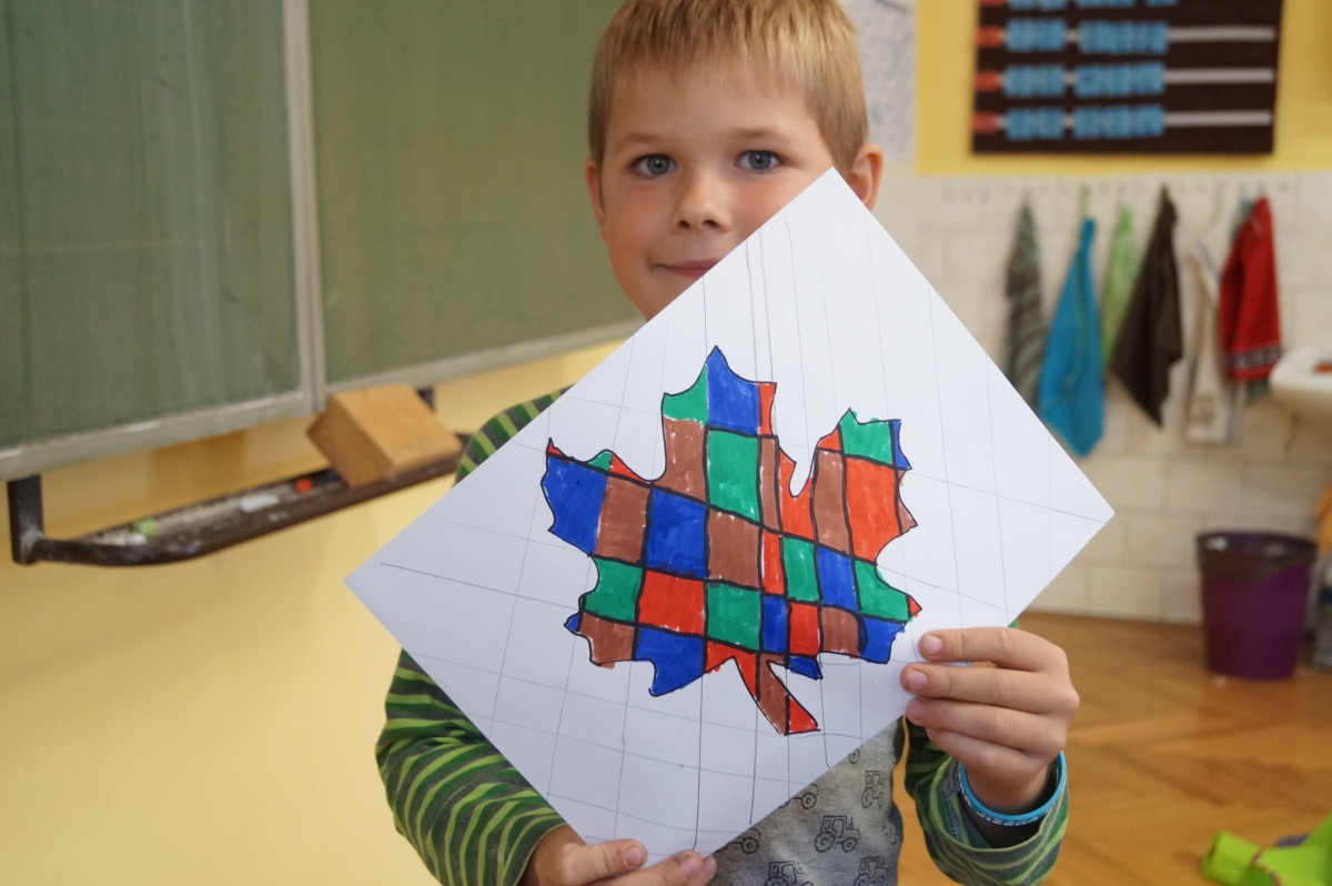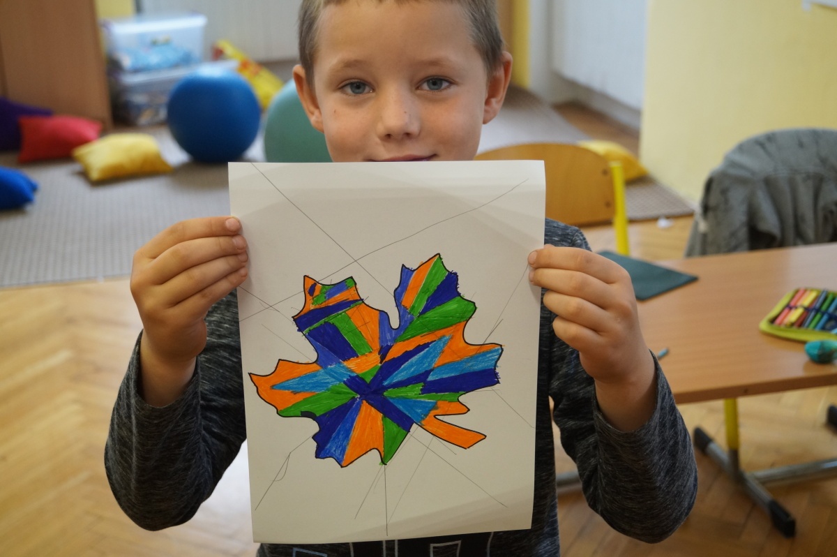 Javorový list – práce s pravítkem, fixy nebo pastelkami