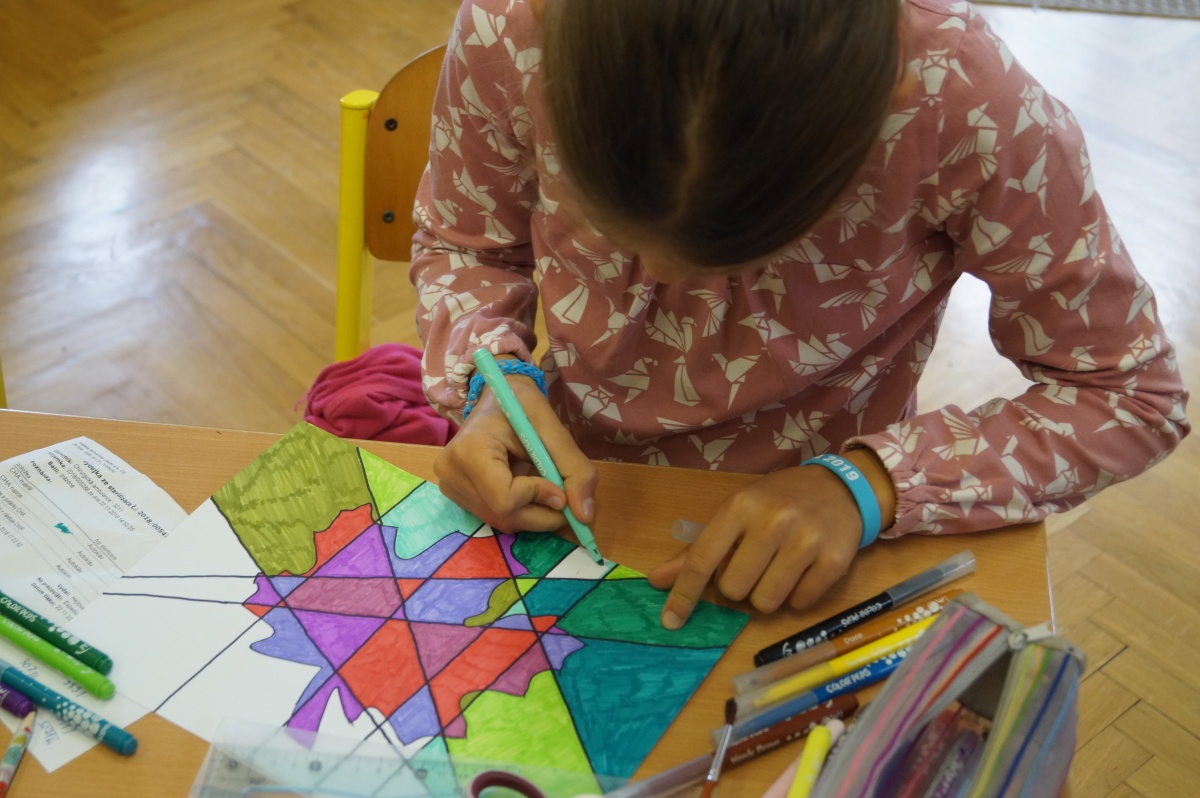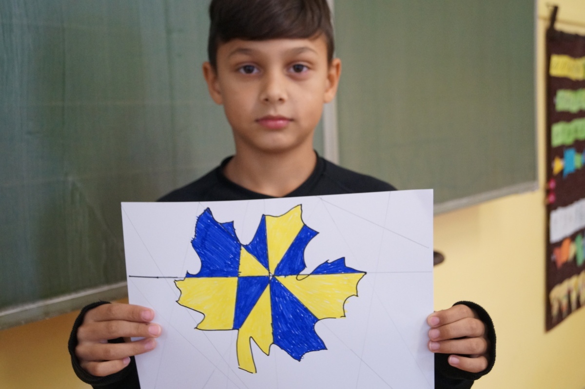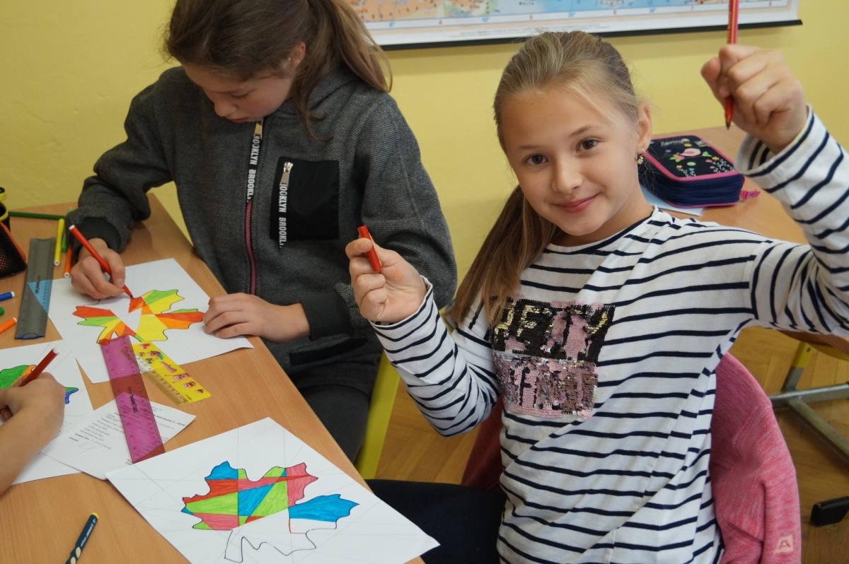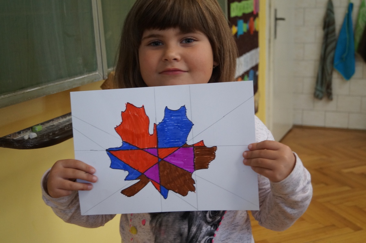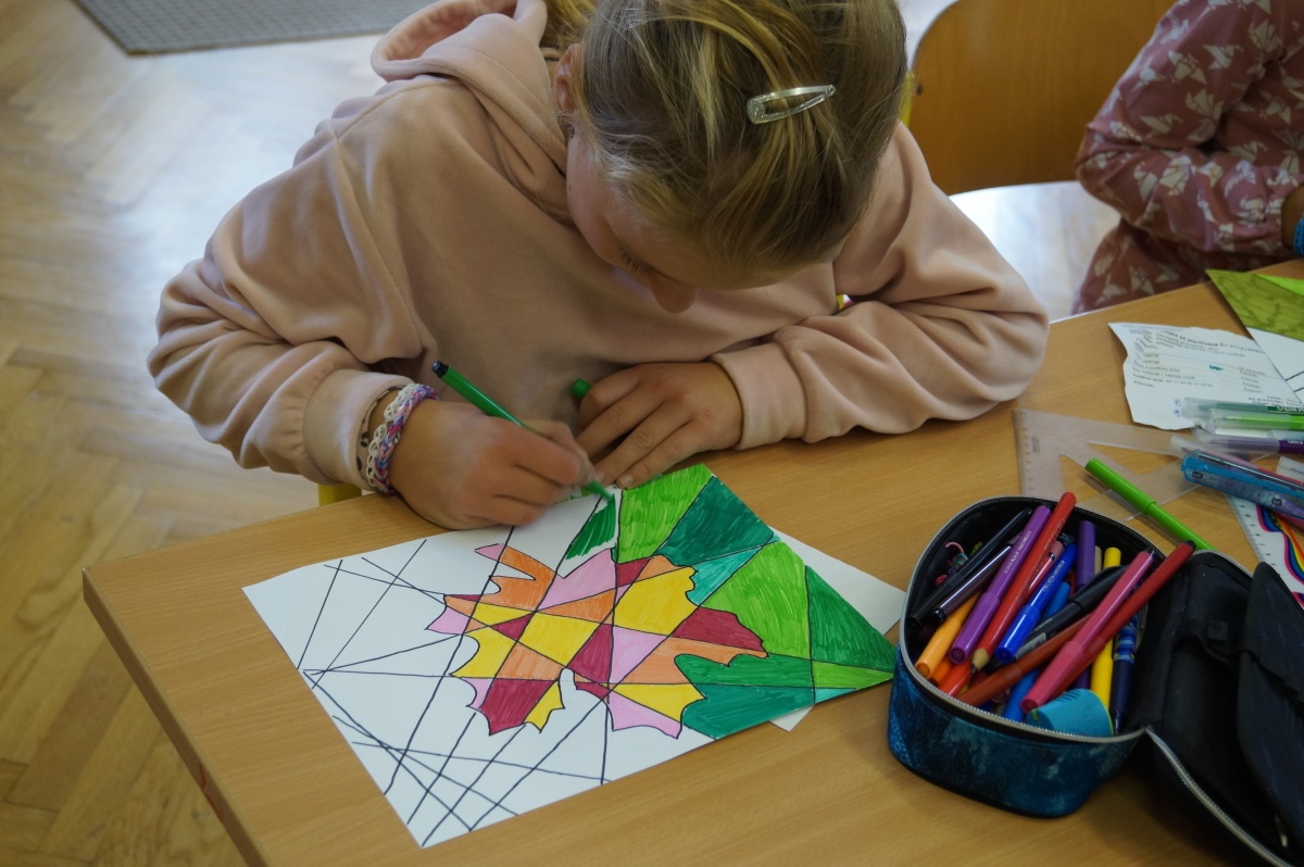 Javorový list – práce s pravítkem, fixy nebo pastelkami