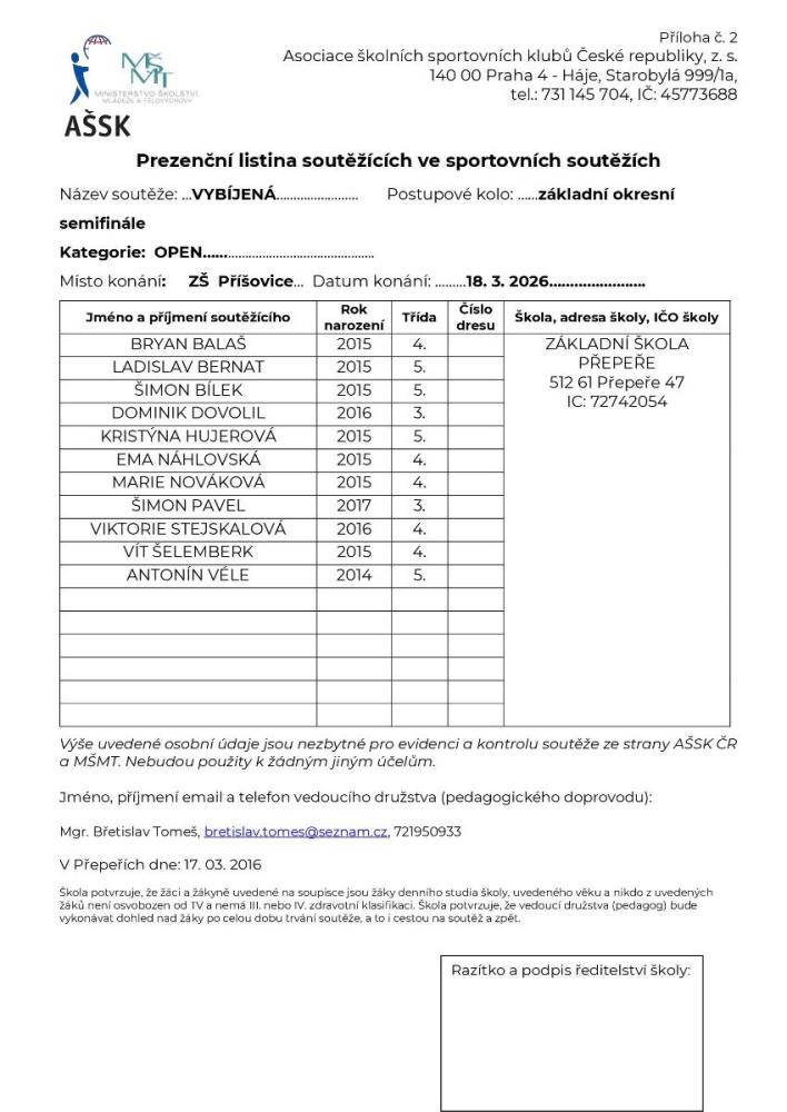 Na závěr bych chtěl všechny hráče pochválit za maximální snahu a rodičům za dopravu do Příšovic.