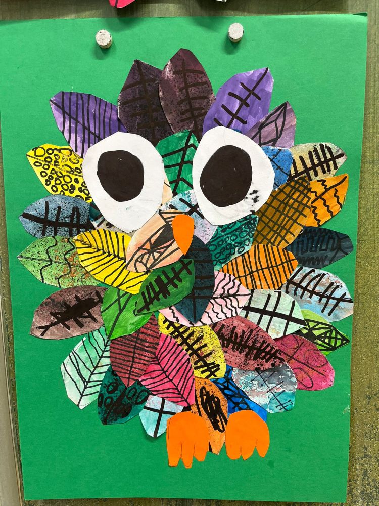 ZŠ Přepeře, Práce žáků, 2.roč., skupinová práce, malba vodovkami, kresba fixem, “pták Jarabák” vydáno 26.3.2026 | Mgr. Barbora Bulířová