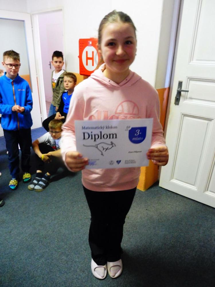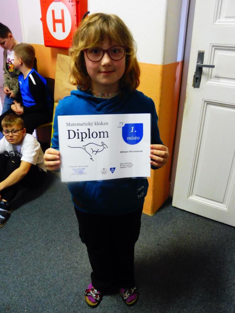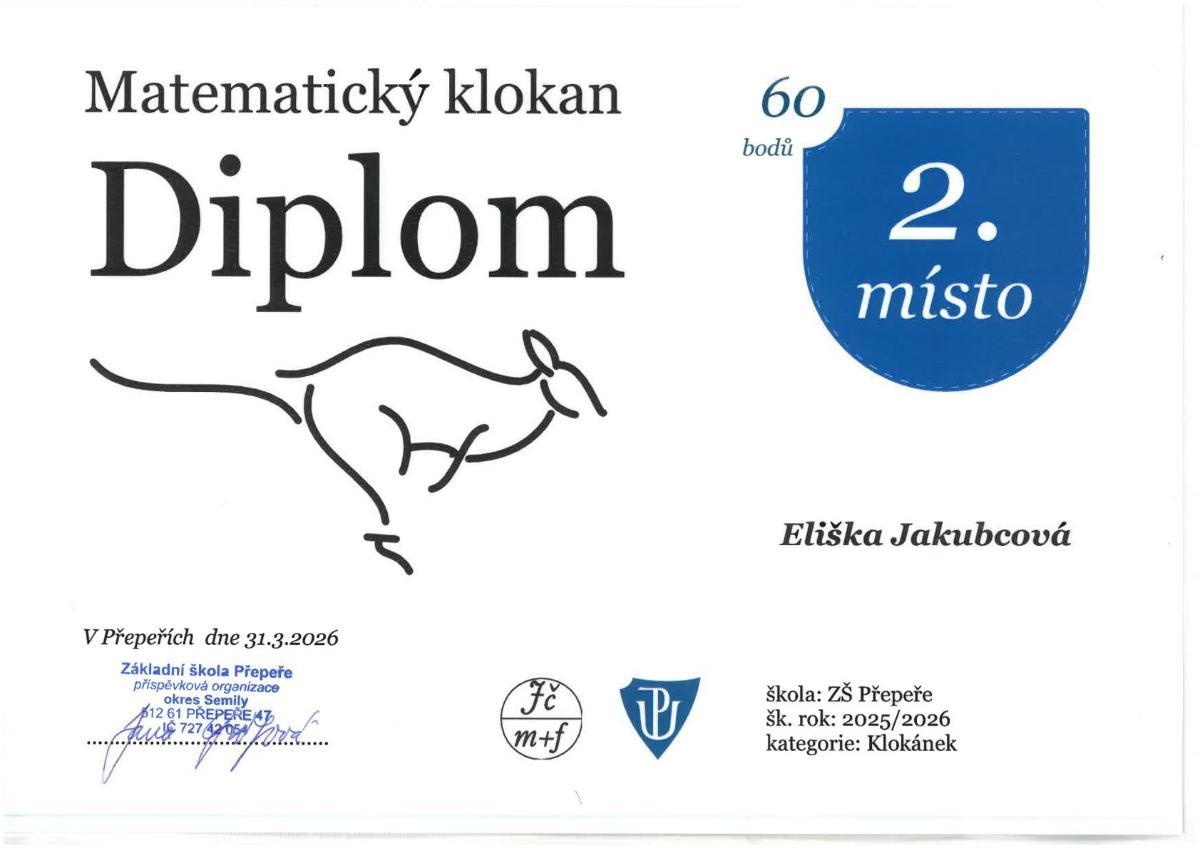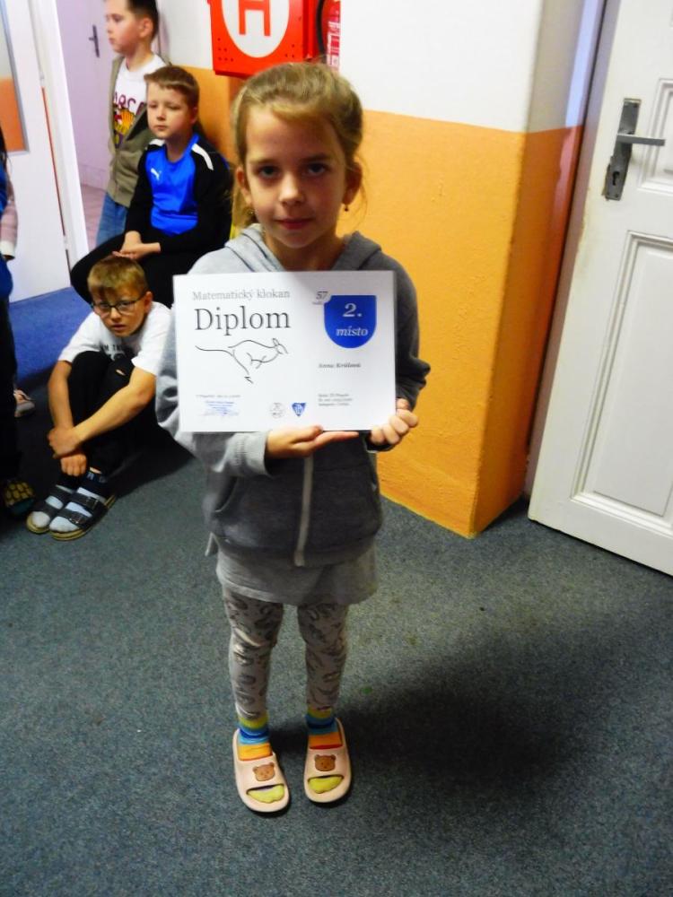 V kategorii Klokánek zvítězil a 1.místo obsadil Danylo Udodenko z 5. třídy. Na 2. místě se umístily Eliška Jakubcová a Ema Náhlovská ze 4. třídy a 3. místo pak patří Emě Filipové z 5. třídy.