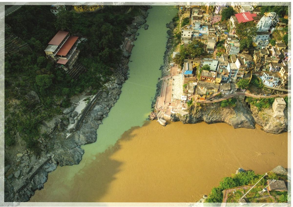 - Pramení v Himalájích, vzniká soutokem dvou řek Bhagirathi a Alaknandá ve městě Devprayag.
