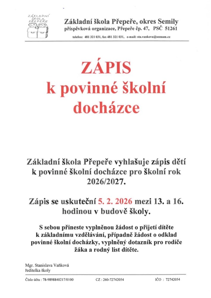 Ve čtvrtek 5. 2. 2026 proběhl v naší škole zápis budoucích prvňáčků.