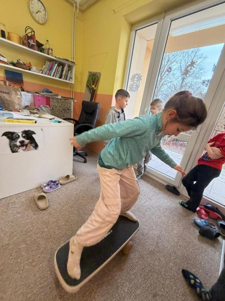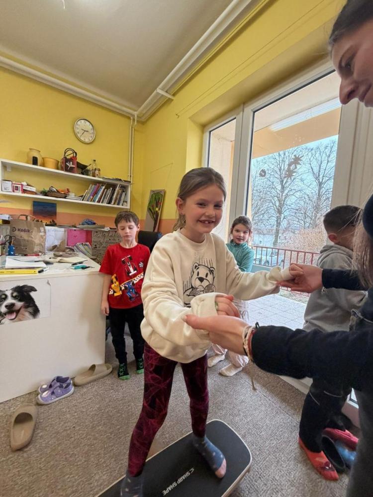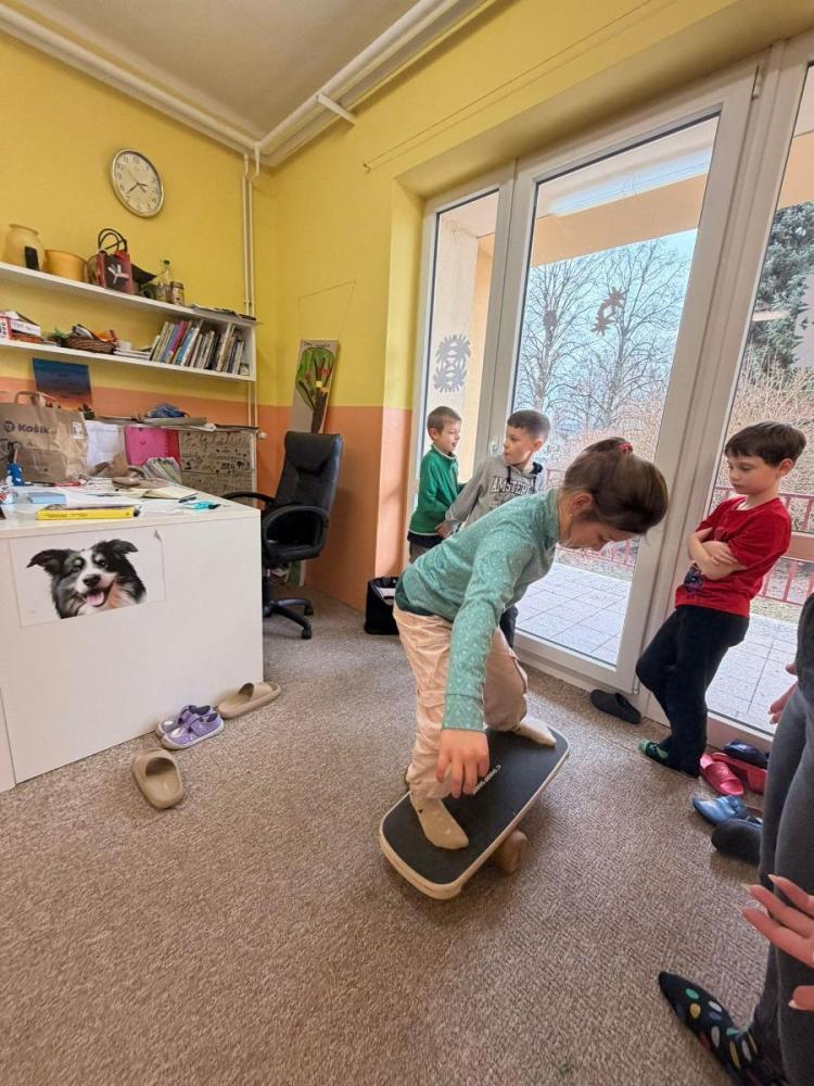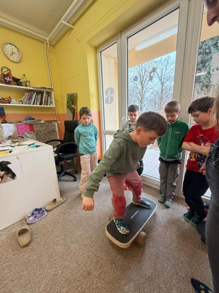 Setkání proběhlo kvůli špatnému počasí v přepeřské sokolovně. Účast byla veliká, přišly téměř všechny děti ze školní družiny a několik menších kamarádů ze školky s rodiči. Claire byla k dětem velmi přátelská a ty ji neustále hladily a mazlily. Paní Kokinová nejdříve krátce pohovořila o psech a užitečnosti canisterapie. Všichni se ale těšili na ukázku toho, co Claire umí. A je toho opravdu hodně. Viděli jsme ukázky agility – Claire hravě zvládala přeskoky překážek, probíhání tunely i slalom. Pobavila nás i ukázkou dogdancingu. Nejoblíbenější částí programu bylo vyzkoušení prvků agility samotnými dětmi. A Claire se snažila, za malý pamlsek poslouchala jako hodinky. Ve druhé části programu jsme nechali prostor i pro pohyb obecenstva. Děti si vyzkoušely proběhnout psí dráhu a pohrát si s hracím látkovým padákem a míčem. Ti, kteří dávají přednost klidnější zábavě, měli připravené omalovánky a různé pracovní listy se psí tématikou.