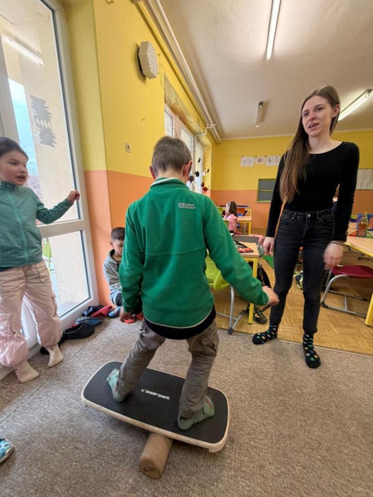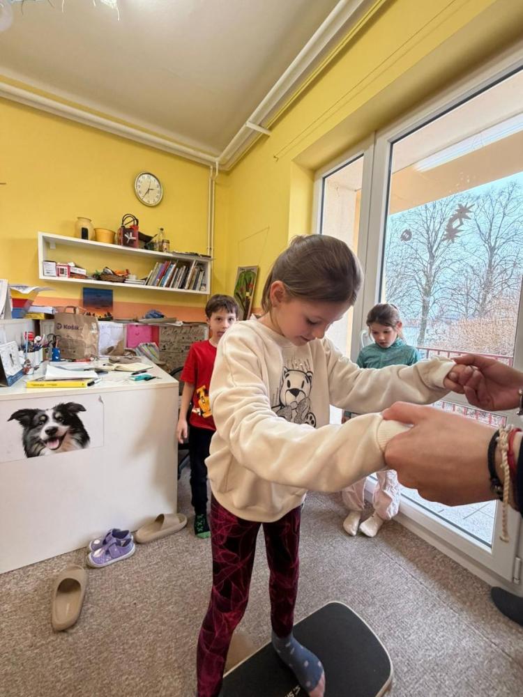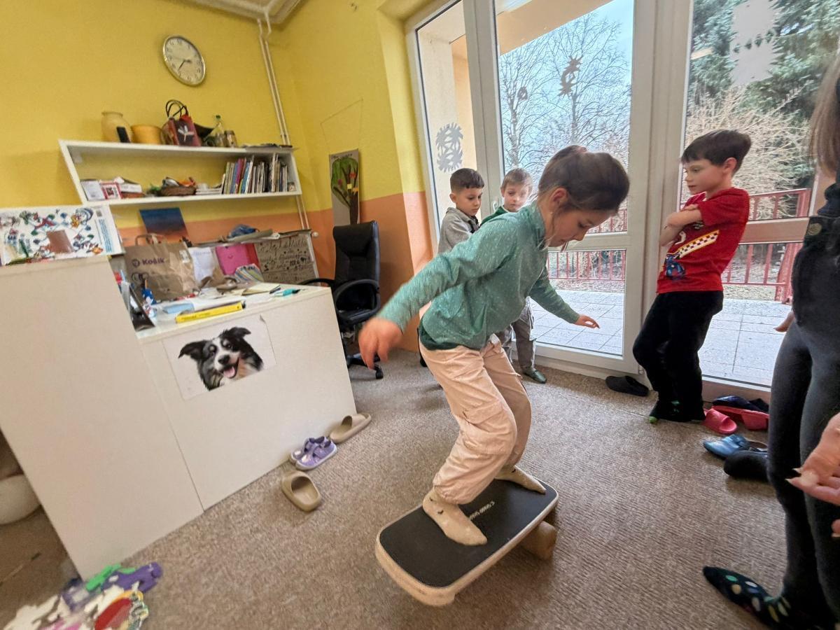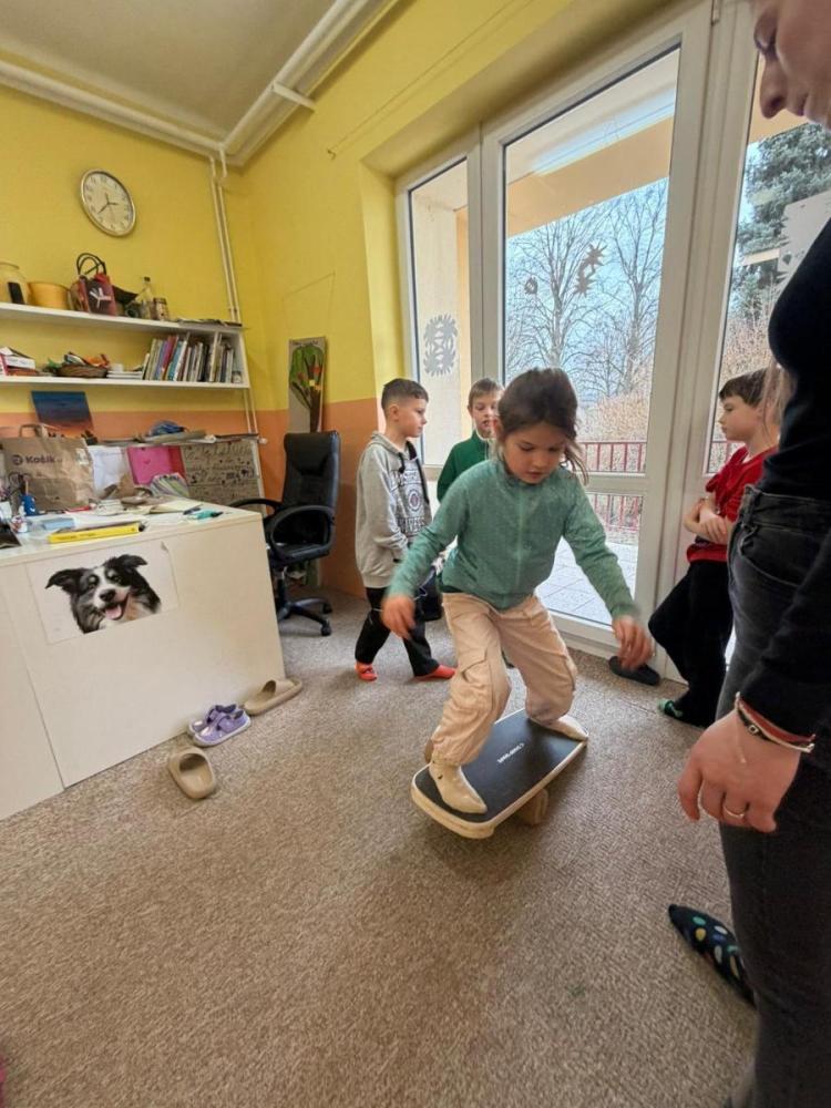 Setkání proběhlo kvůli špatnému počasí v přepeřské sokolovně. Účast byla veliká, přišly téměř všechny děti ze školní družiny a několik menších kamarádů ze školky s rodiči. Claire byla k dětem velmi přátelská a ty ji neustále hladily a mazlily. Paní Kokinová nejdříve krátce pohovořila o psech a užitečnosti canisterapie. Všichni se ale těšili na ukázku toho, co Claire umí. A je toho opravdu hodně. Viděli jsme ukázky agility – Claire hravě zvládala přeskoky překážek, probíhání tunely i slalom. Pobavila nás i ukázkou dogdancingu. Nejoblíbenější částí programu bylo vyzkoušení prvků agility samotnými dětmi. A Claire se snažila, za malý pamlsek poslouchala jako hodinky. Ve druhé části programu jsme nechali prostor i pro pohyb obecenstva. Děti si vyzkoušely proběhnout psí dráhu a pohrát si s hracím látkovým padákem a míčem. Ti, kteří dávají přednost klidnější zábavě, měli připravené omalovánky a různé pracovní listy se psí tématikou.