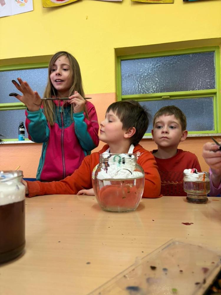 Dnes jsme byli se školní družinou využít posledních šancí na pořádnou bobovačku. Když jsme se vrátili, zkusili jsme si vyrobit vlastní zmrzlinu. Trvalo nám to skoro půl hodiny, ale nikoho to neodradilo a všichni se do míchání pořádně zapojili. Moc nám chutnala, a třeba si to ještě někdy zopakujeme 😊!