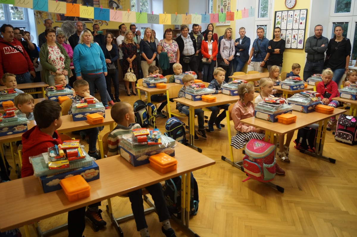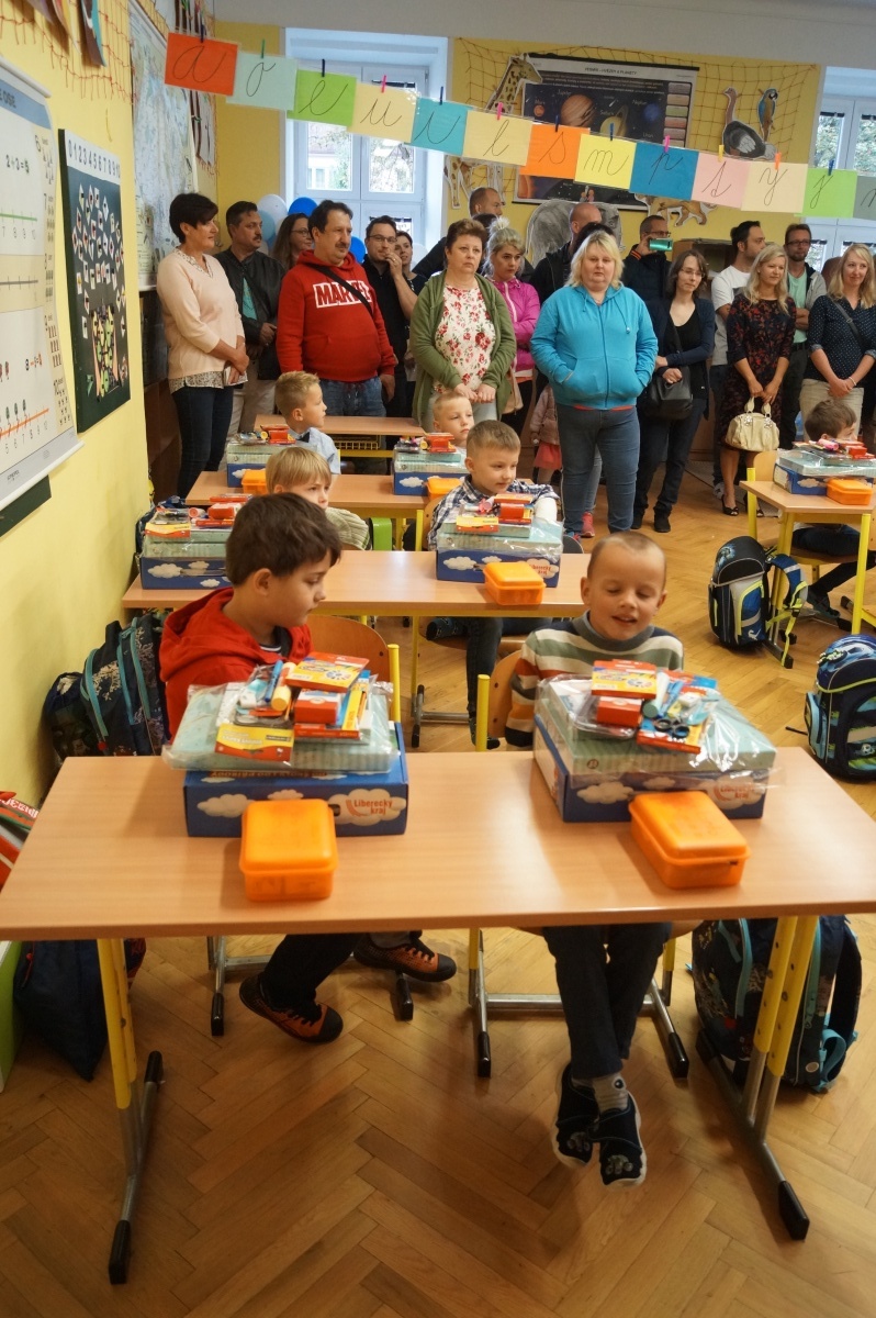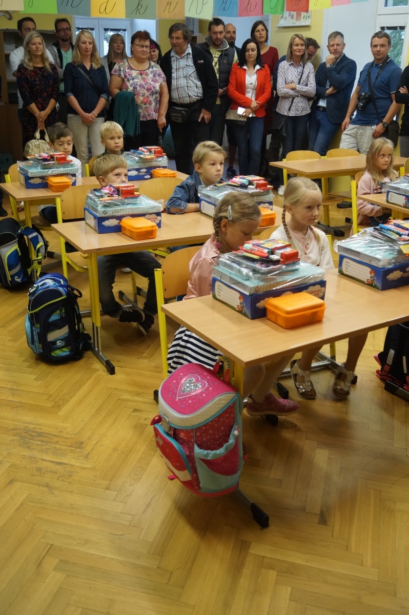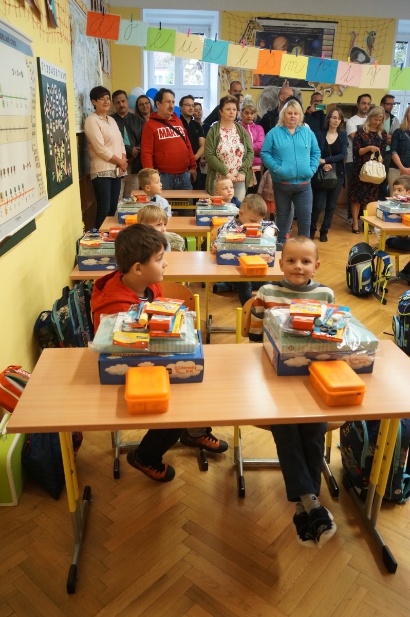 Následně se ujala slova třídní učitelka Mgr. Vaňková, která přítomným upřesnila informace týkající se chodu školy, rozvrhu hodin a potřebných pomůcek. Uvítací hodina utekla ve škole jako voda a všech 11 chlapců a 5 děvčat odcházelo domů s plnýma rukama. Děti dostaly hodnotné školní potřeby, které zajisté brzy využijí.