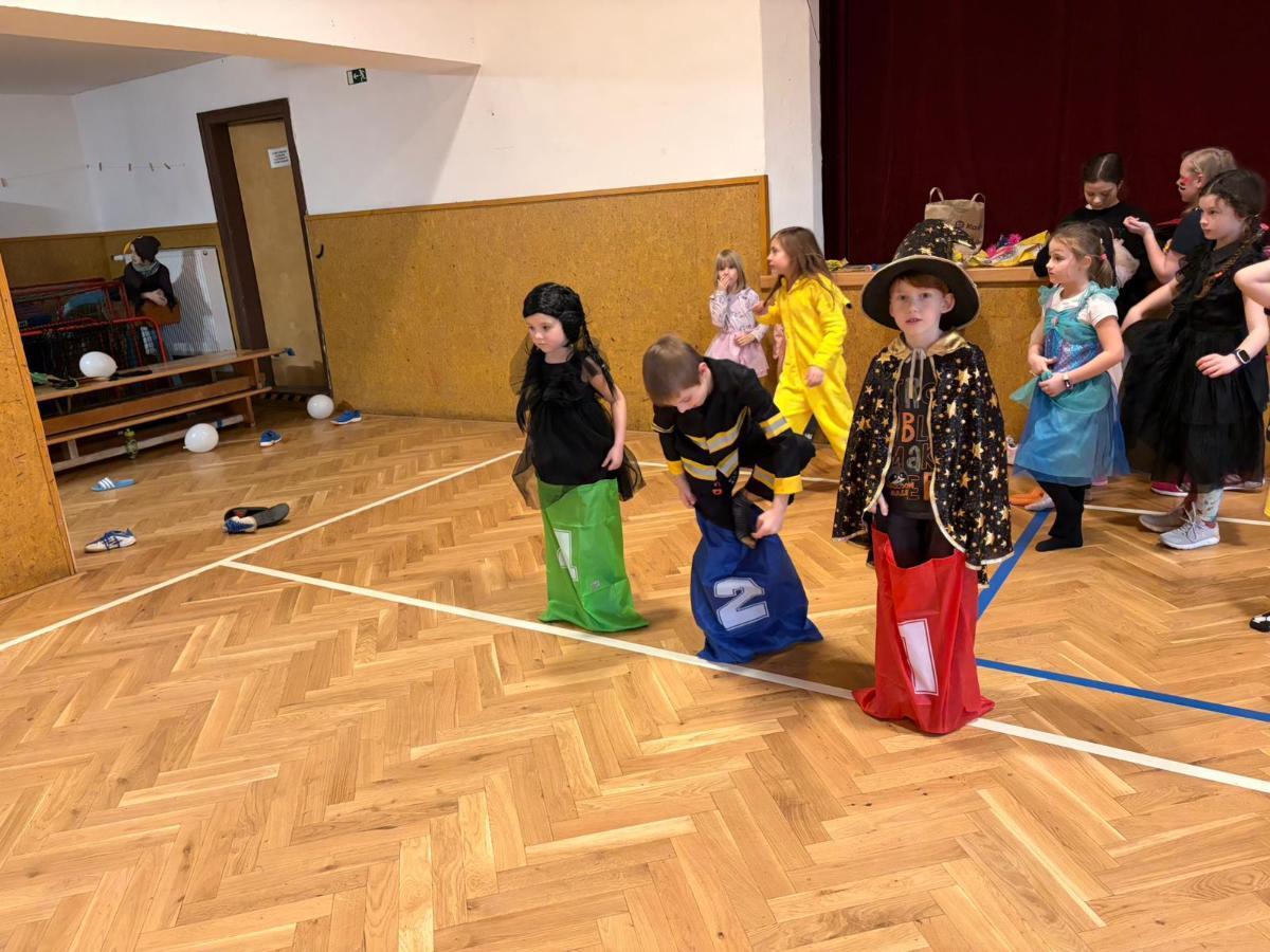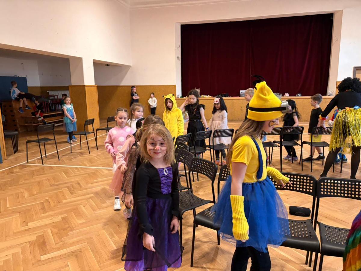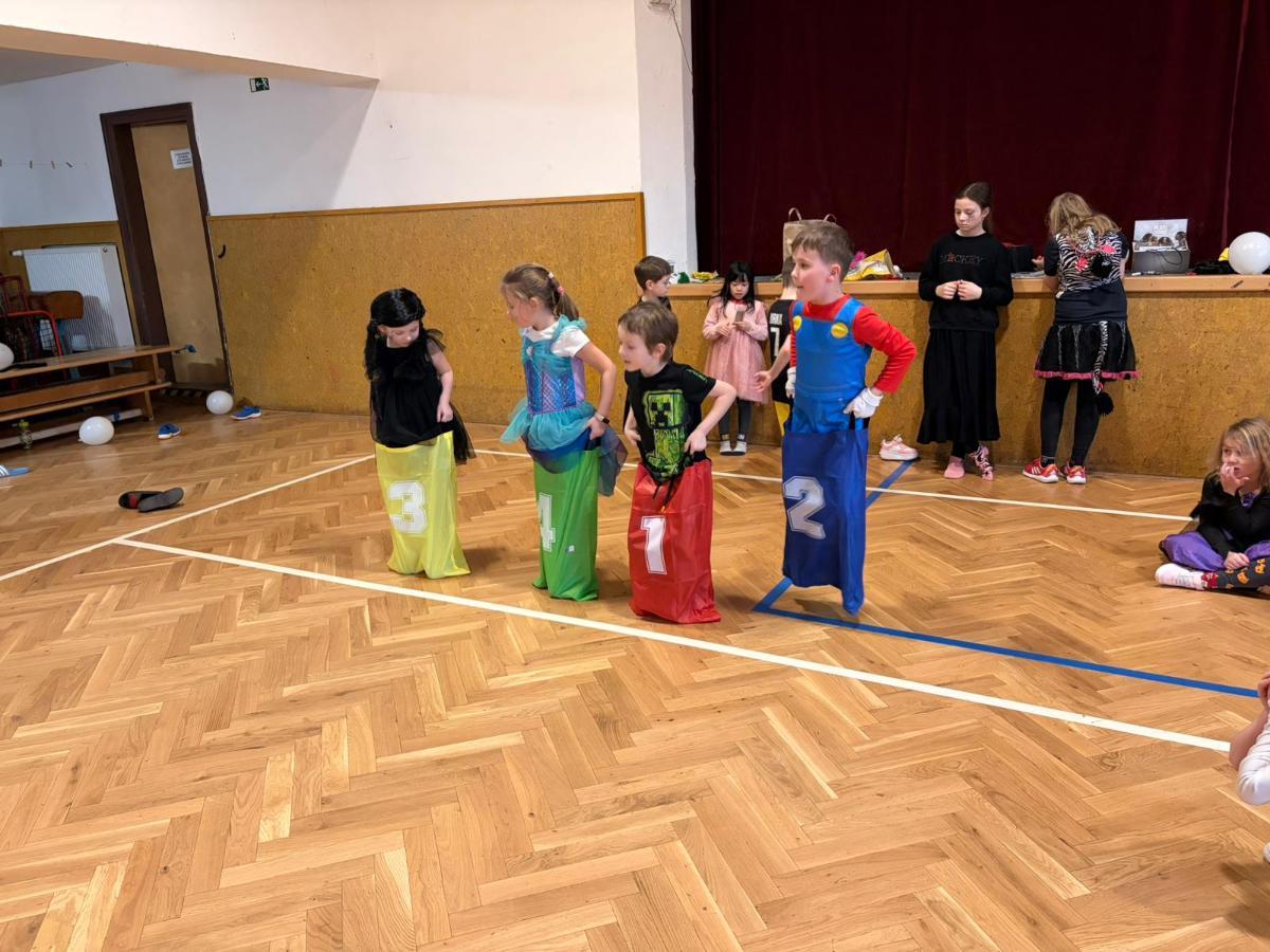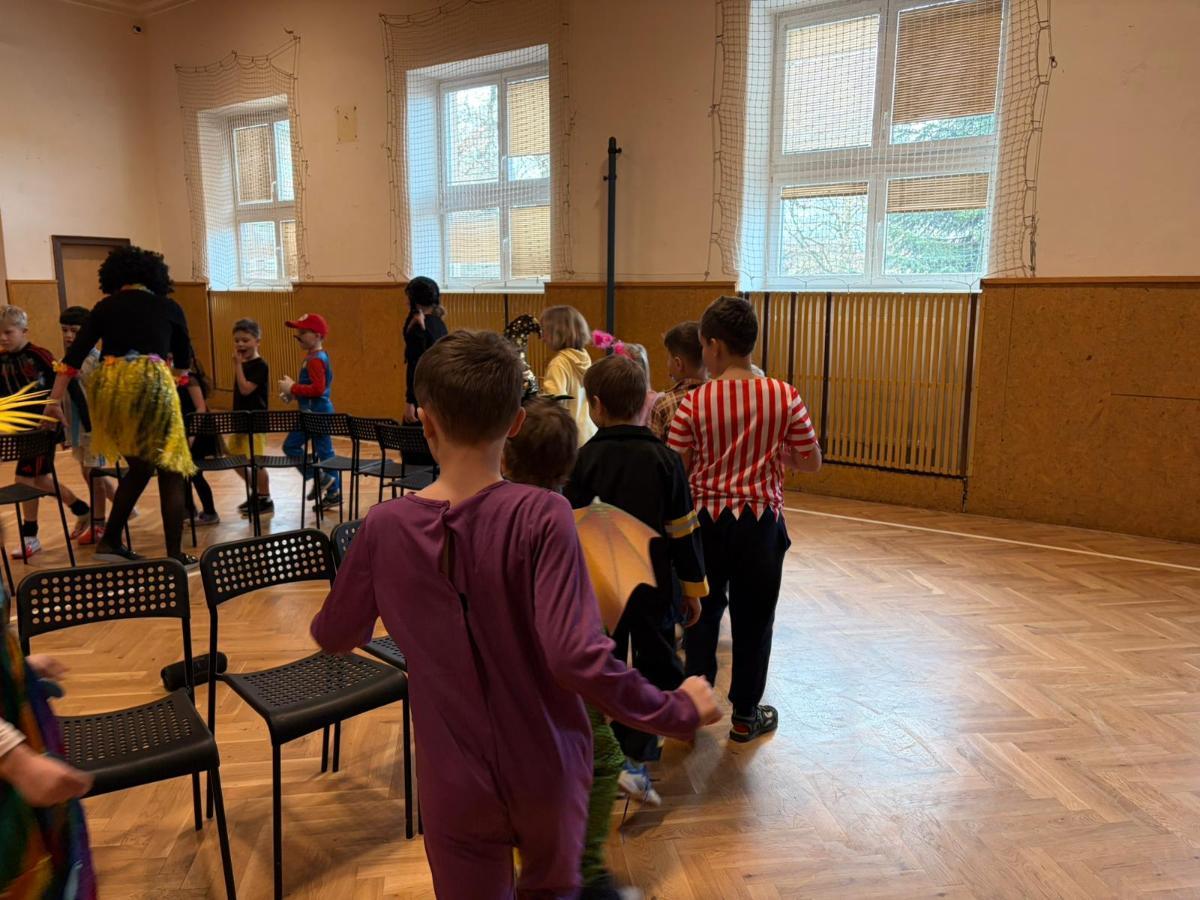 Zúčastnili se i někteří starší žáci, kteří již školní družinu nenavštěvují. Oblečení v nejrůznějších maskách jsme si zasoutěžili: nechyběly oblíbené židličky, hra na sochy, závody ve skocích v pytlích, či tanec s balónky. Po soutěžích následovala volná zábava (diskotéka). Nakonec jsme vyhodnotili masky a došli k závěru, že se všechny moc povedly a některé byly velice originální. Každý si odnesl domů nějakou maličkost jako odměnu.