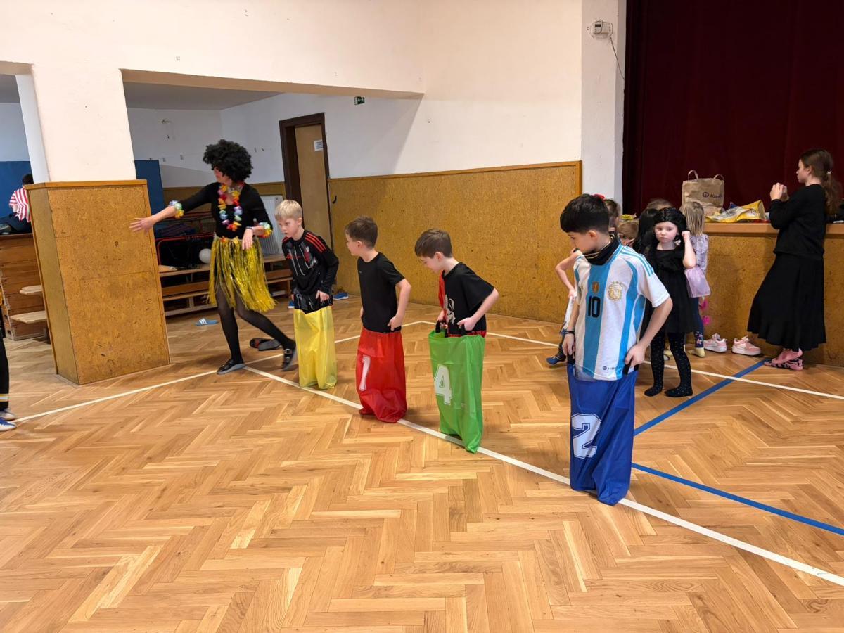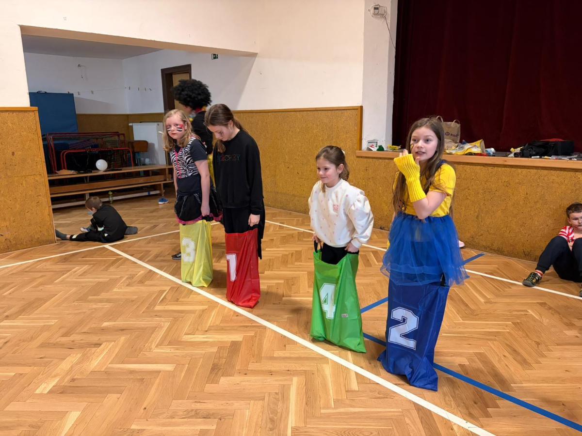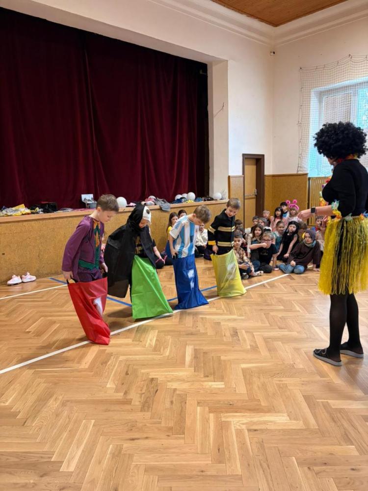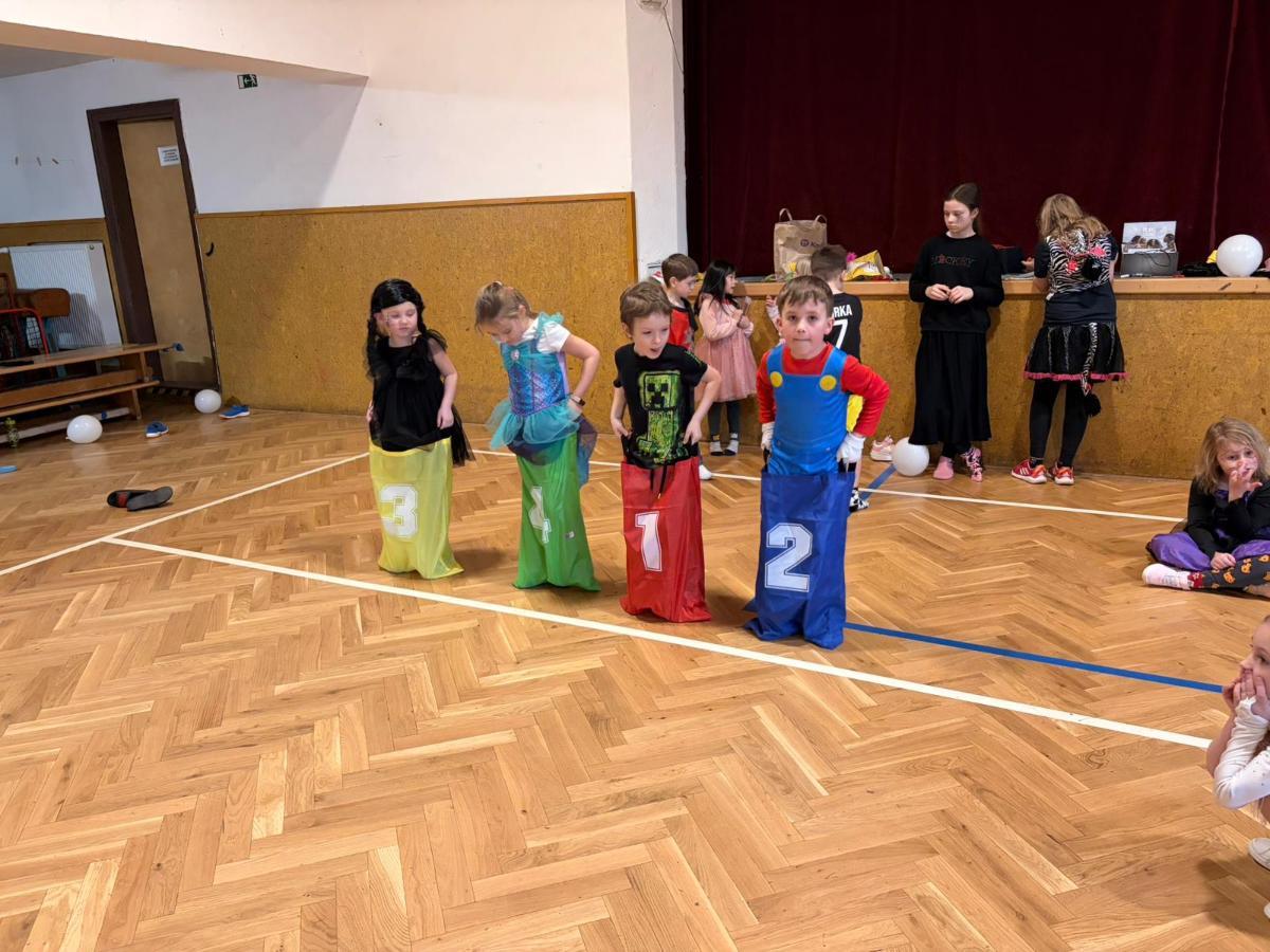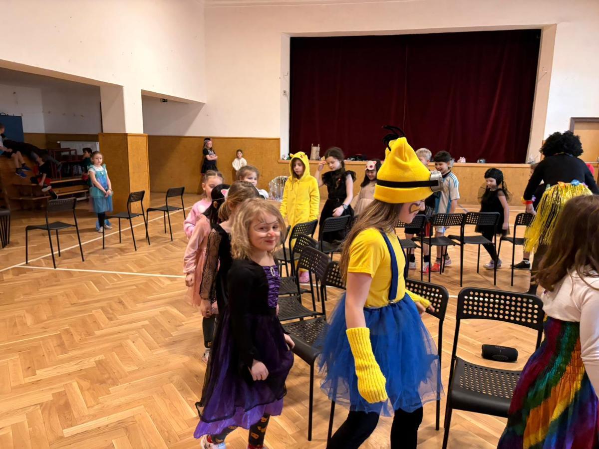 Zúčastnili se i někteří starší žáci, kteří již školní družinu nenavštěvují. Oblečení v nejrůznějších maskách jsme si zasoutěžili: nechyběly oblíbené židličky, hra na sochy, závody ve skocích v pytlích, či tanec s balónky. Po soutěžích následovala volná zábava (diskotéka). Nakonec jsme vyhodnotili masky a došli k závěru, že se všechny moc povedly a některé byly velice originální. Každý si odnesl domů nějakou maličkost jako odměnu.