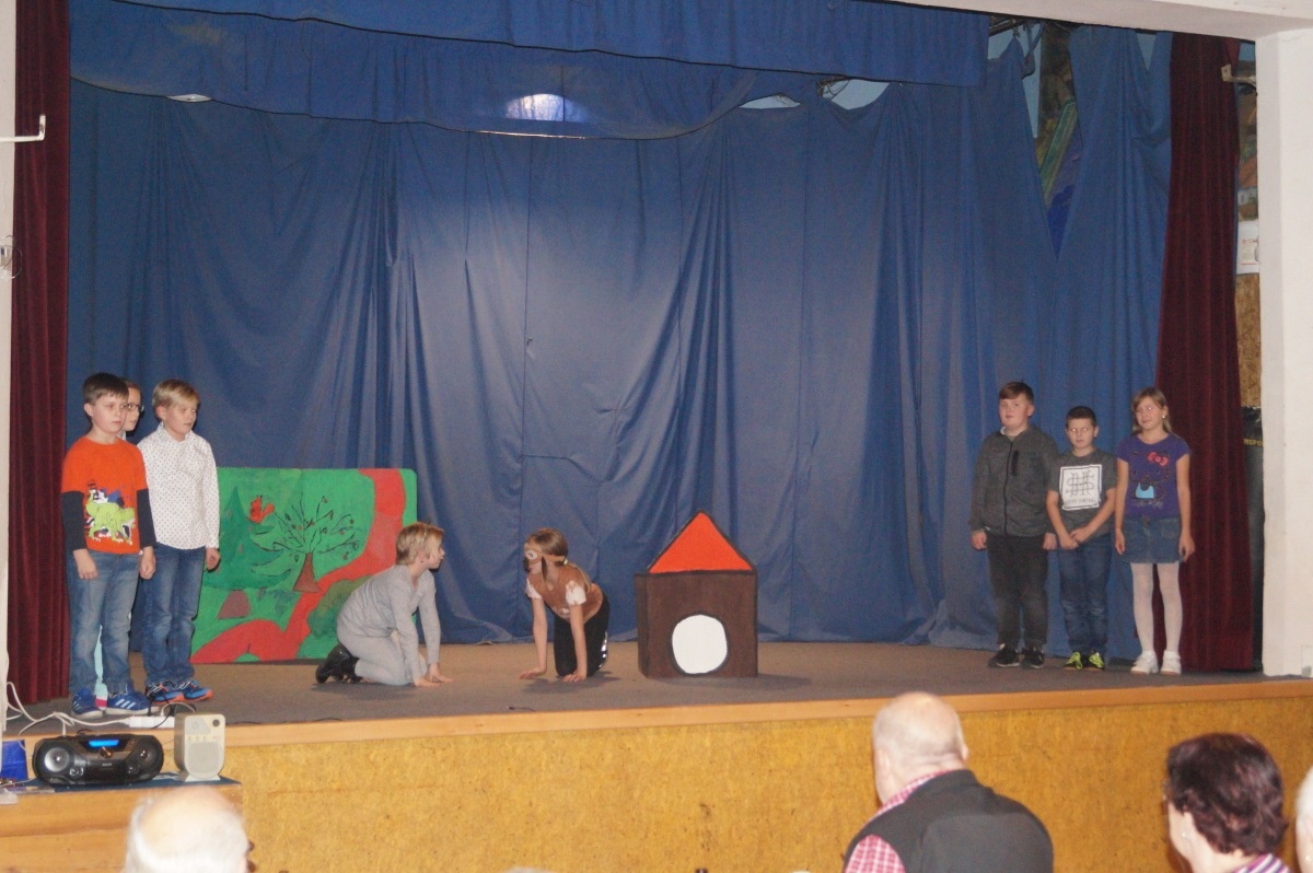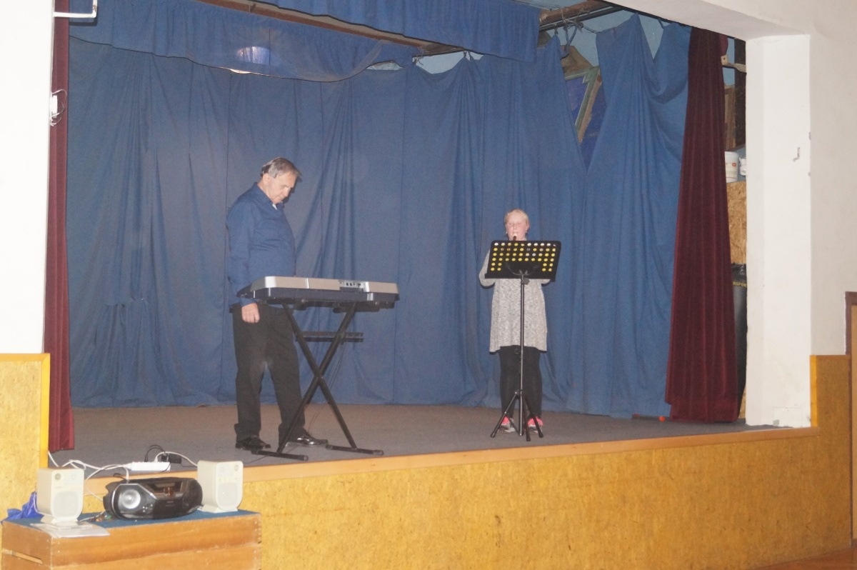 Ne jinak tomu bylo i letos. Sešli jsme se pár minut před 17. hodinou 24. listopadu u místní sokolovny a s patřičným napětím čekali, kdy na nás přijde řada. „Setkání s důchodci“ zahájil pan starosta s panem místostarostou – zhodnotili uplynulý rok, co se povedlo – a co je ještě potřeba dokončit, …a pak se už otevřela opona a .. naše vystoupení mohlo začít.
