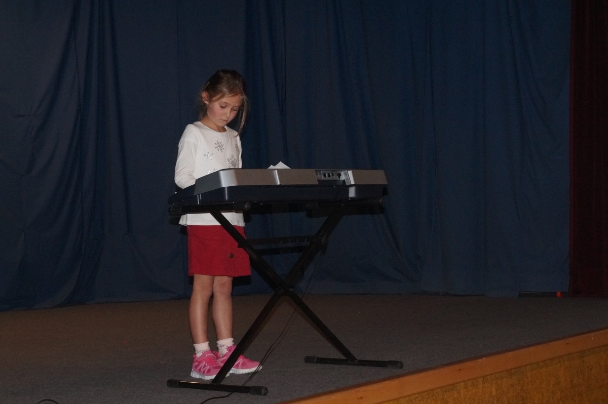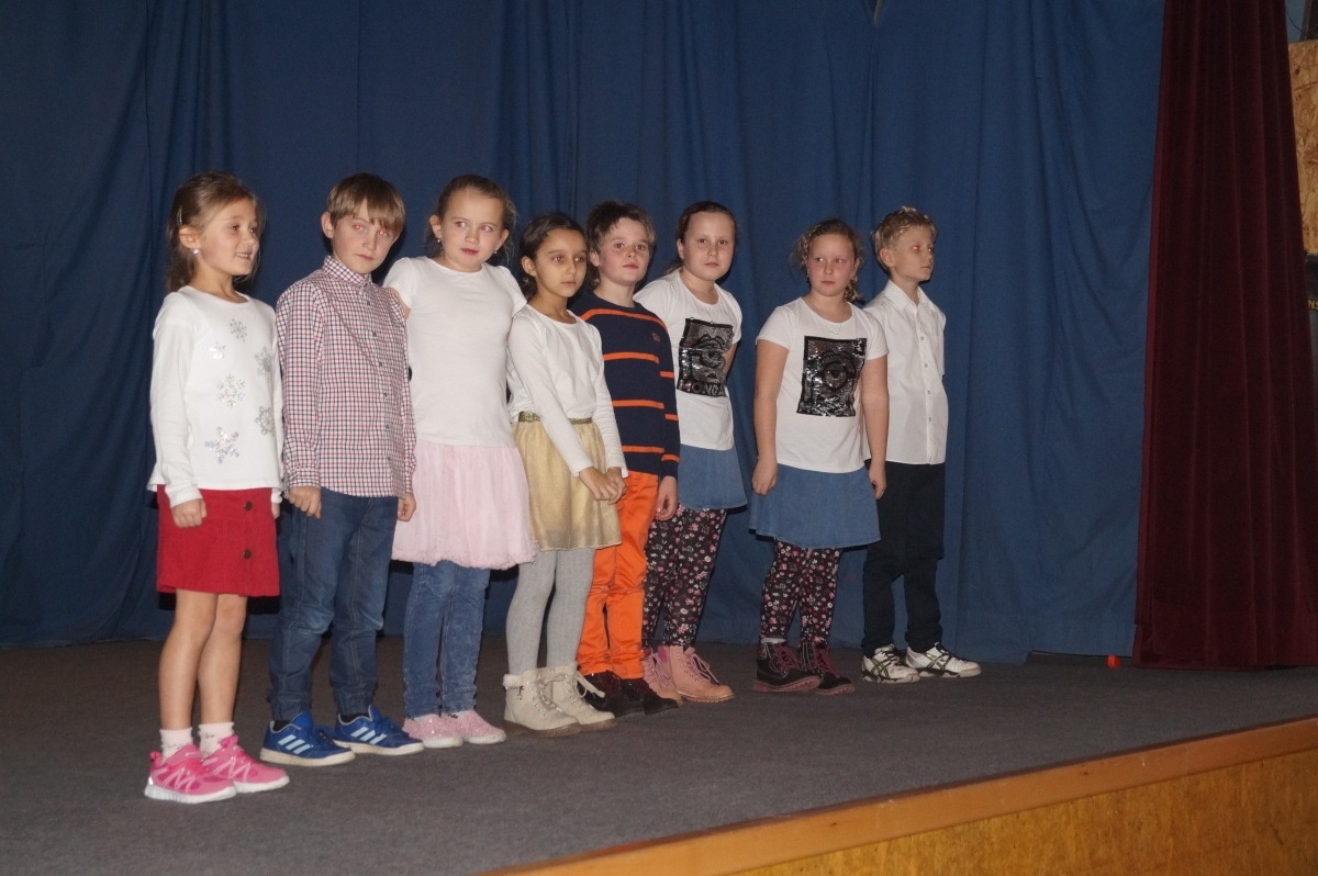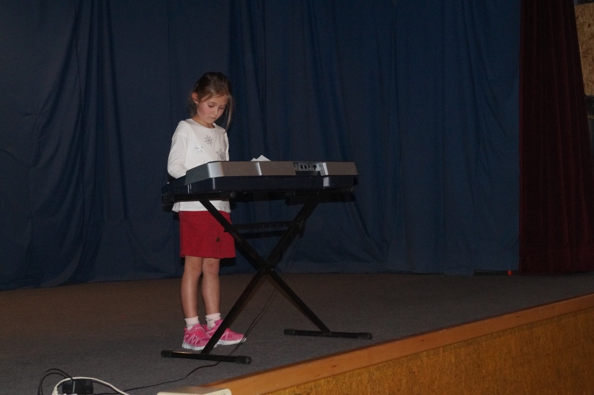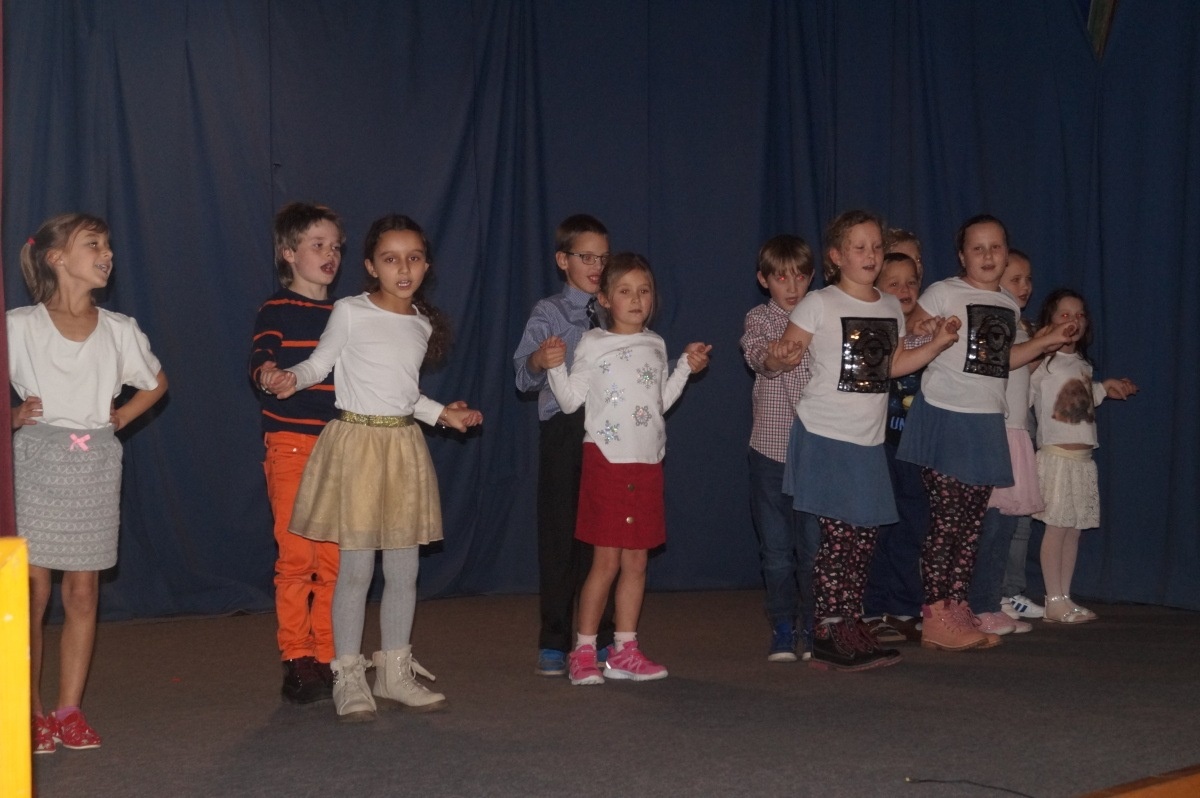 Zahájili jsme vzpomínkou na Spartakiádu – cvičením 3. a 5. ročníku na hudbu Michala Davida – Poupata, dále se střídaly básničky a tanec Mazurka od dětí z druhého ročníku, následovala pohádka Žízeň a cvičení „Pro slepičí kvoč“ od Pavla Nováka žáků 4. třídy, a opět se vrátili třeťáci a páťáci s Karkulkou a Perníkovou chaloupkou. Také nechyběl „Hadí muž“ v podání Vadima Matika. Vše bylo proloženo hrou na flétnu a varhany již s vánoční tematikou. Největší odměnou je pro nás vždy potlesk, který nechyběl za žádným odvedeným číslem. Moc za něj děkujeme.