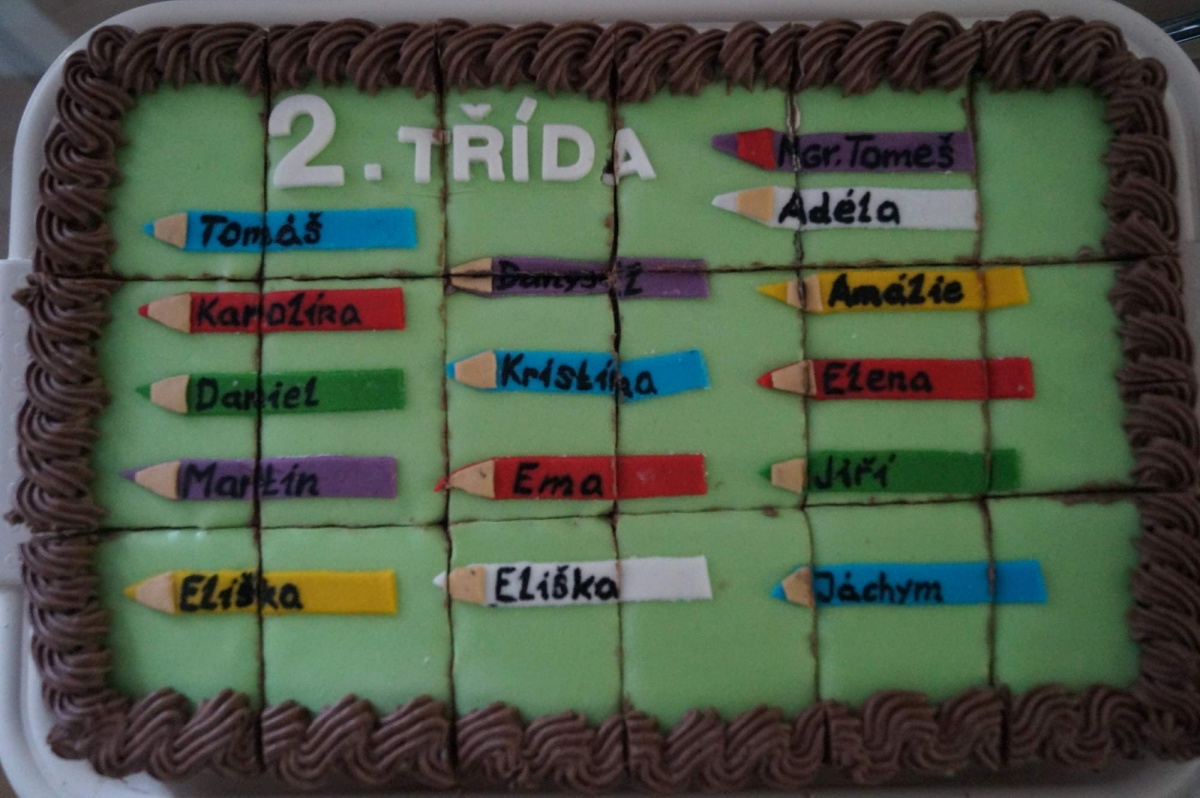 Uvítal je pan starosta, pan ředitel a nakonec i já. Řekli jsme si, co nás v 1. ročníku čeká, prohlédli jsme si učebnice a pomůcky na lavici. Každý žáček se u tabule představil a dostal pamětní list. Přednášet ani zpívat se nikdo neodvážil. Pustili jsme se tedy do poznávání geometrických tvarů a barev. Dále jsme u tabule řadili čísla do 10. to vše nám šlo výborně. Nakonec jsme na koberci „chytali“ písmena. I tam se dětem moc dařilo. Byly velmi šikovné.
