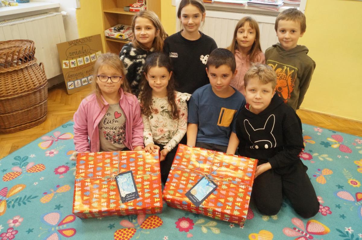 Druháčci a čtvrťáci naplnili dvě krabice tentokrát pro kluky ve věku 9–10 let. Krabice pak putovala na sběrné místo do Turnova a určitě udělá velikou radost.