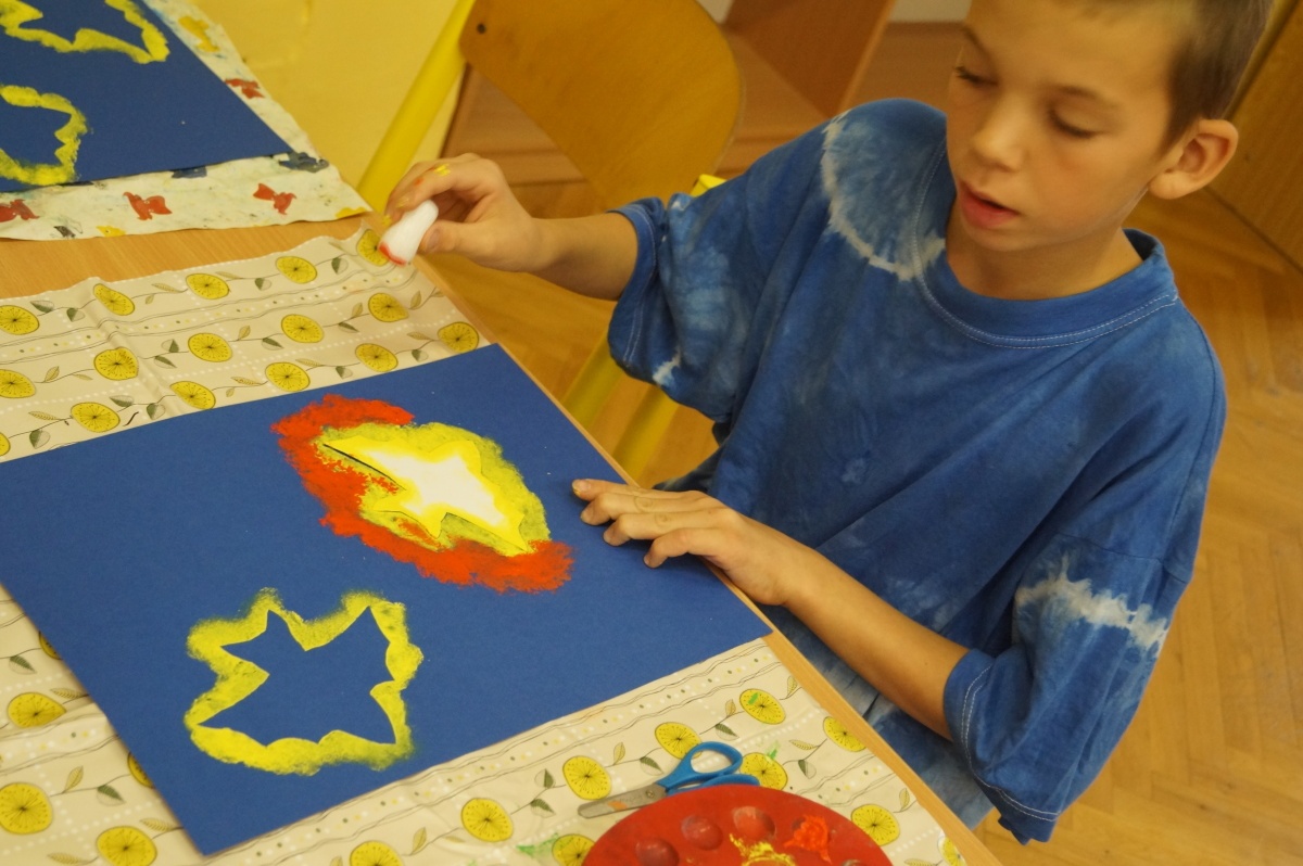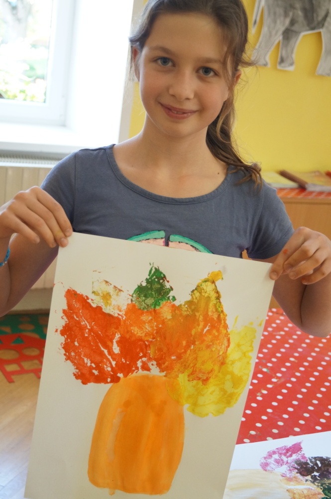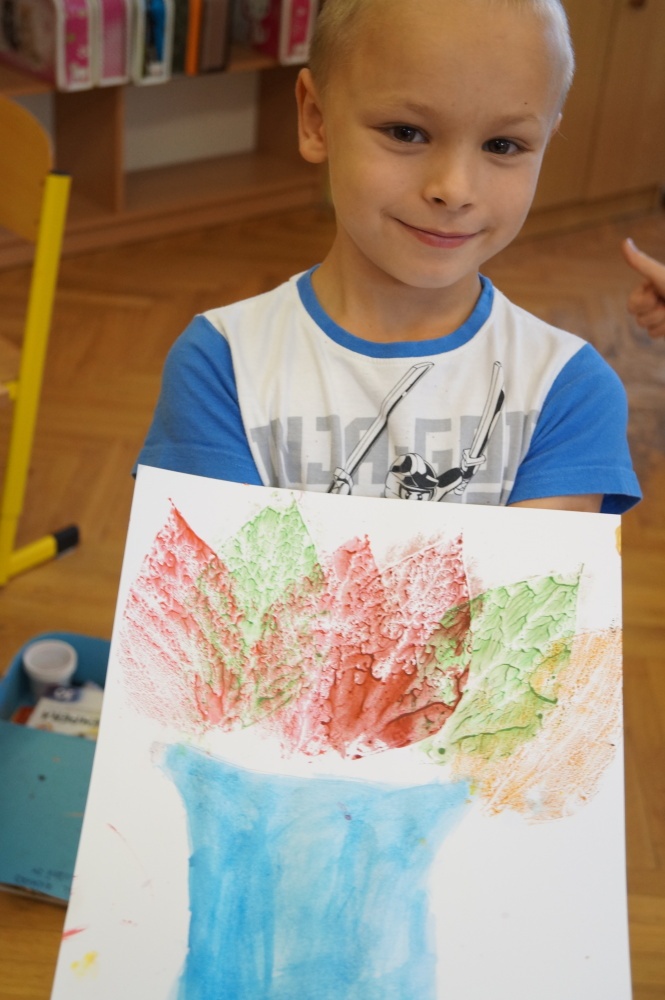 Váza s podzimními listy – vodové a temperové barvy, otisky listů vydáno 7.10.2019 | Mgr. Břetislav Tomeš
