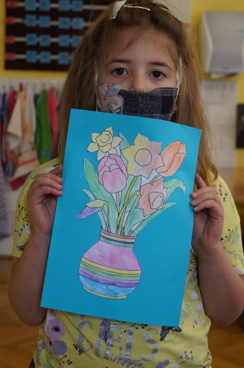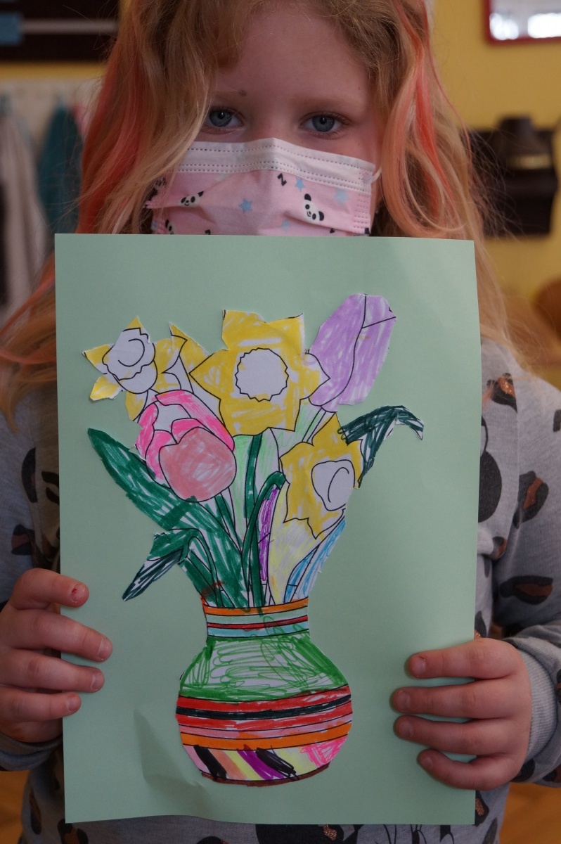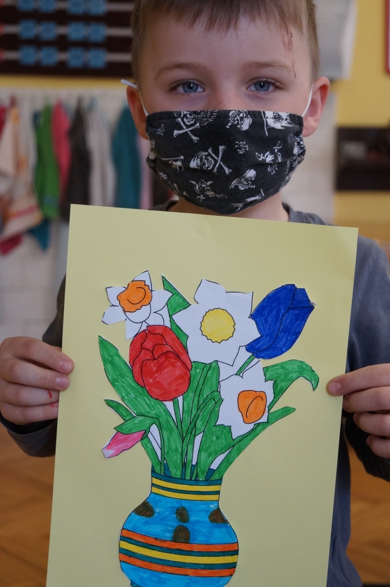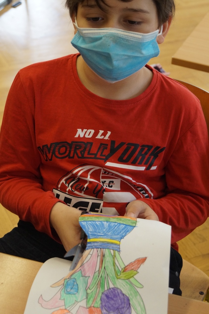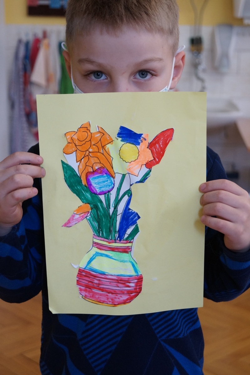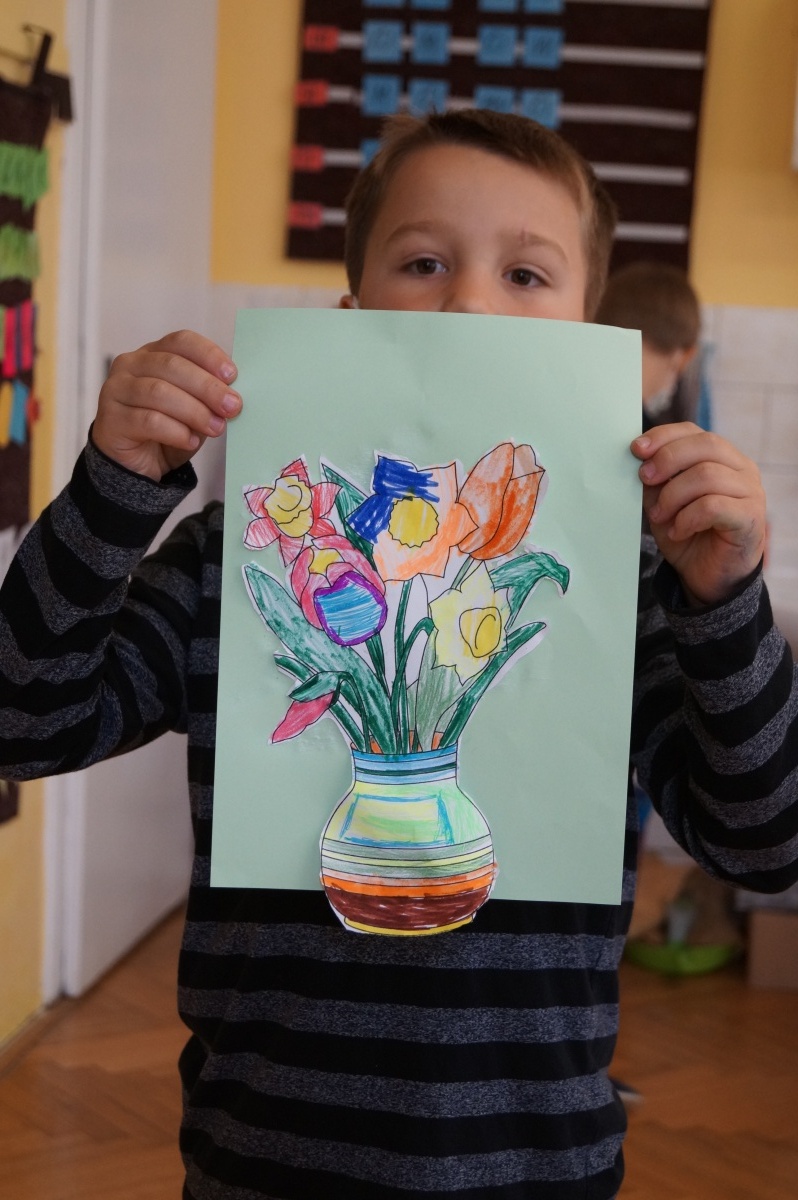 Voda s květinami – VV – libovolná technika, stříhání, lepení