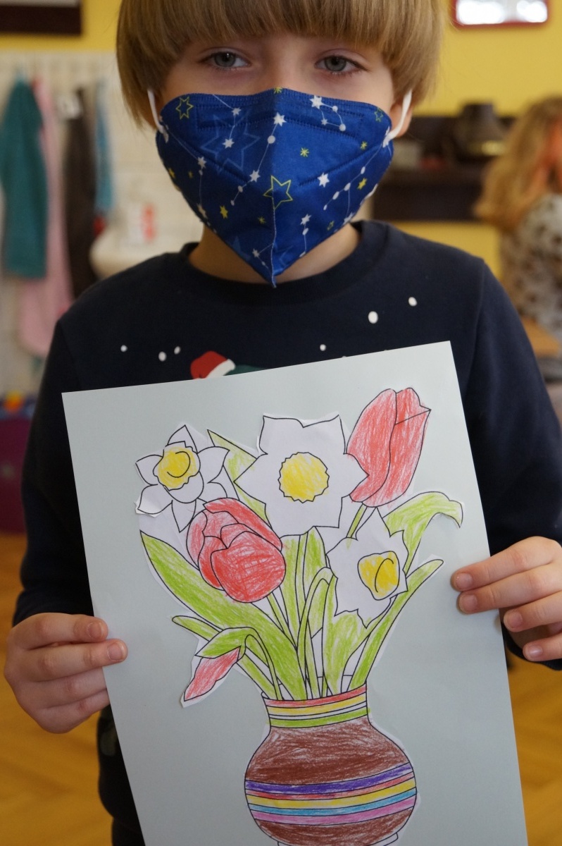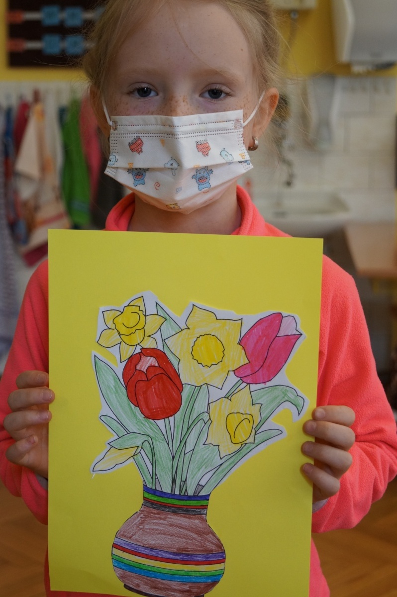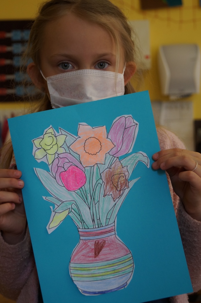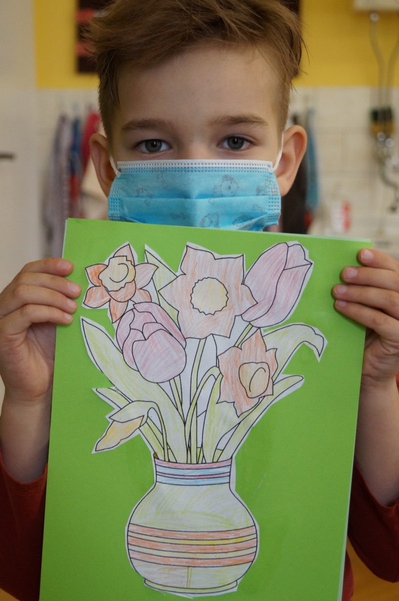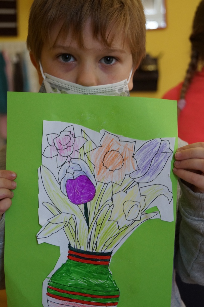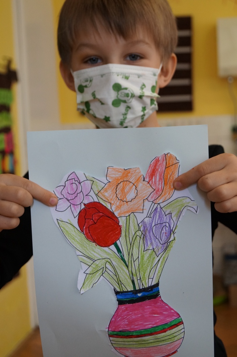 Voda s květinami – VV – libovolná technika, stříhání, lepení