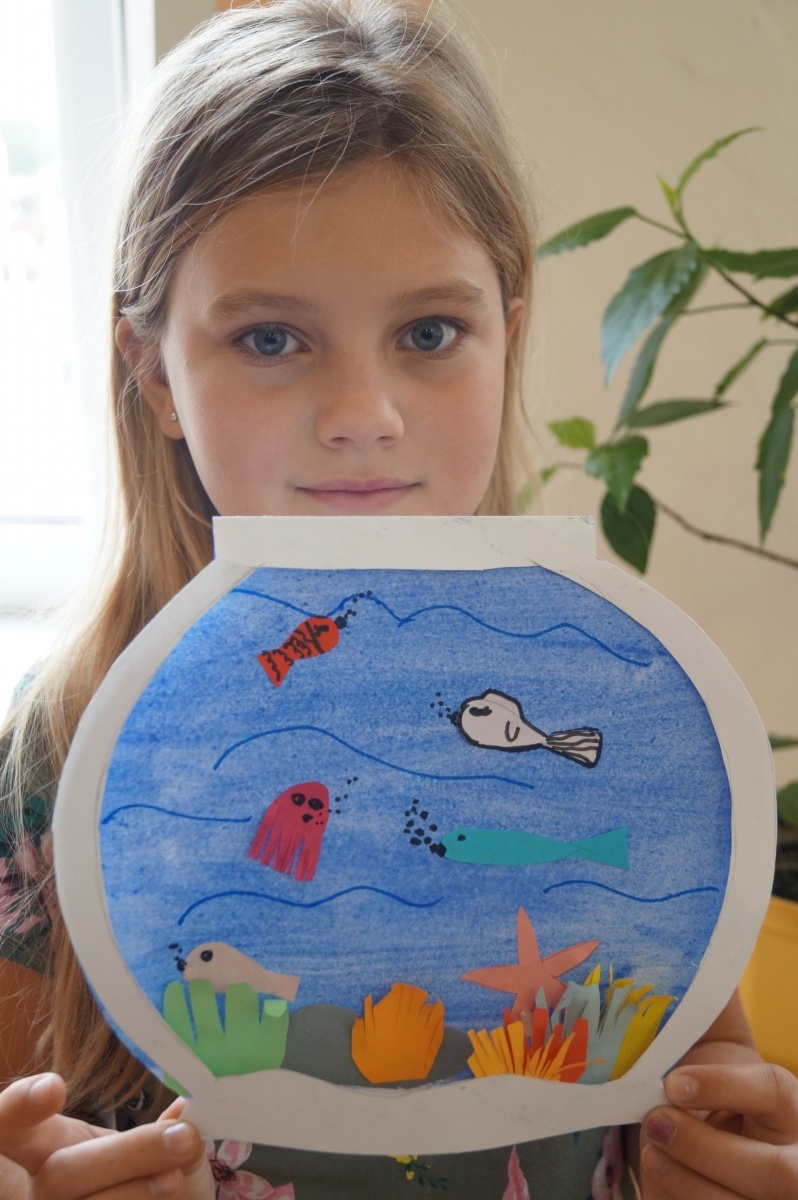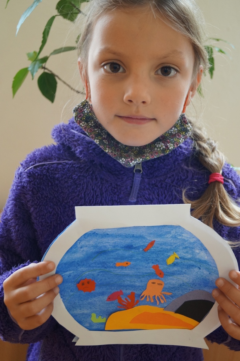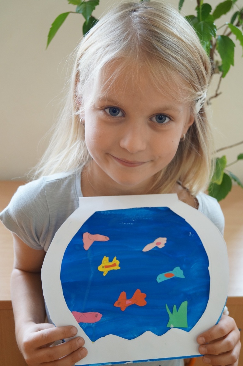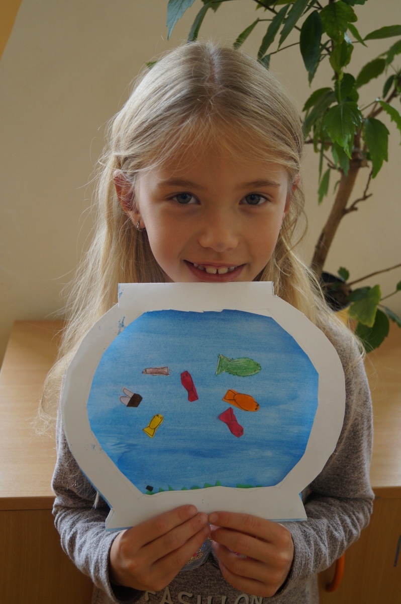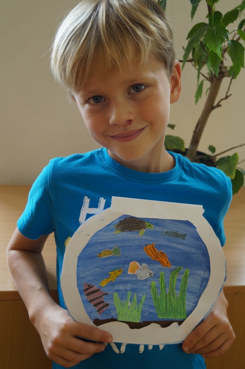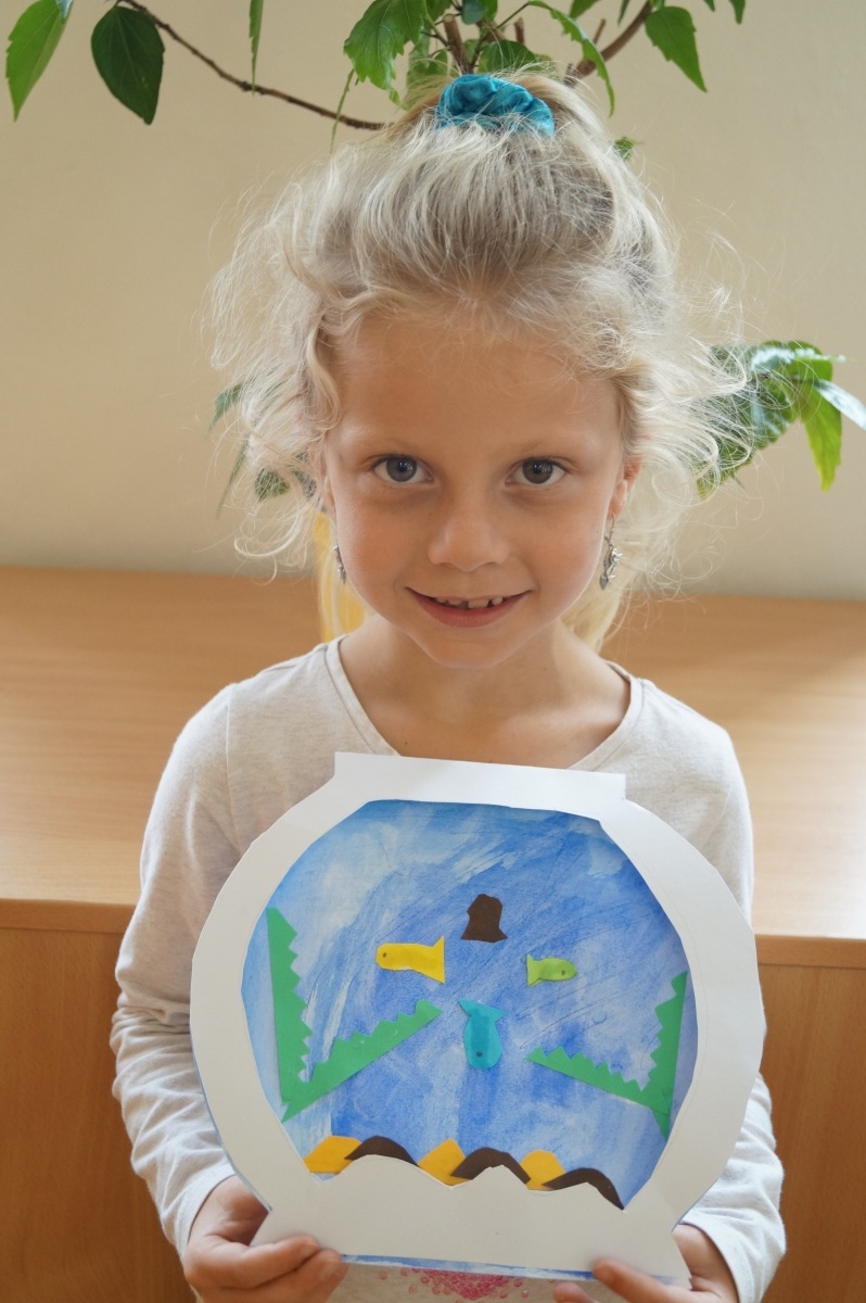 Rybka v akváriu – stříhání, lepení, barvení