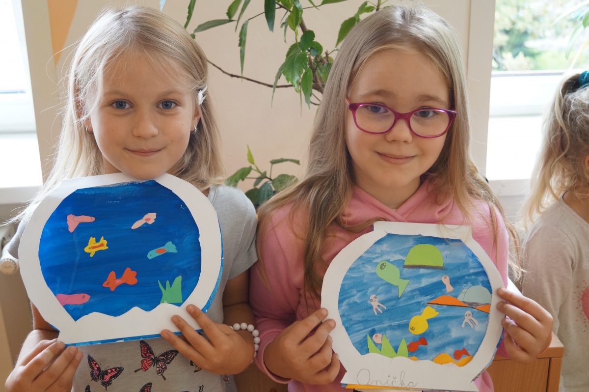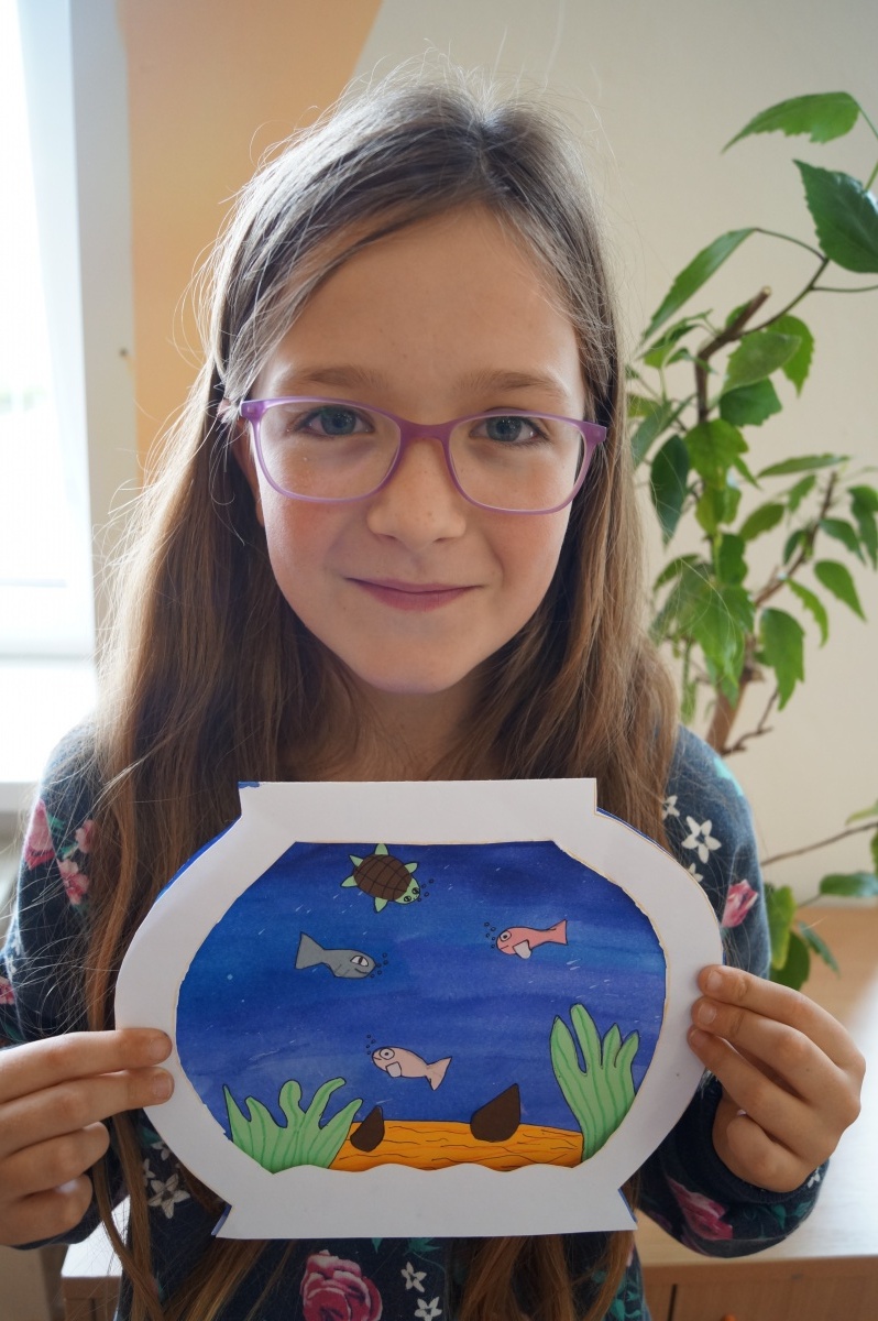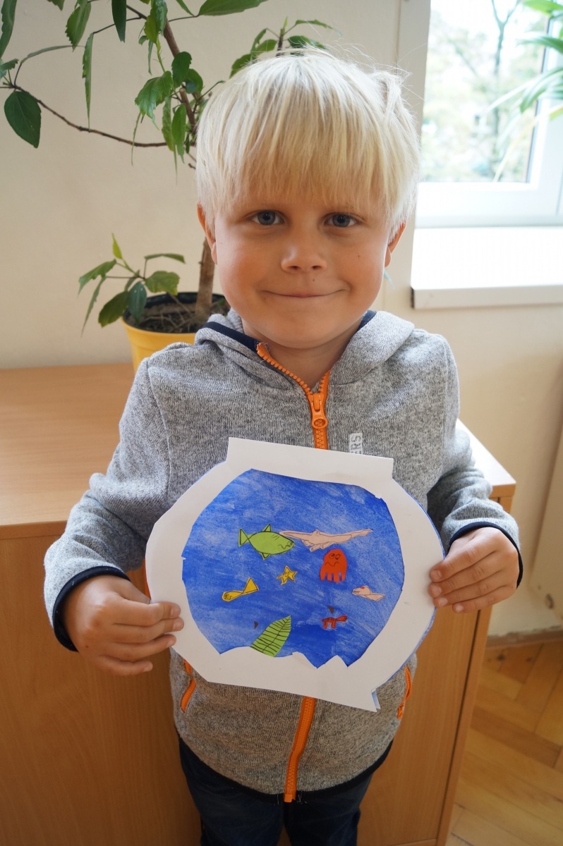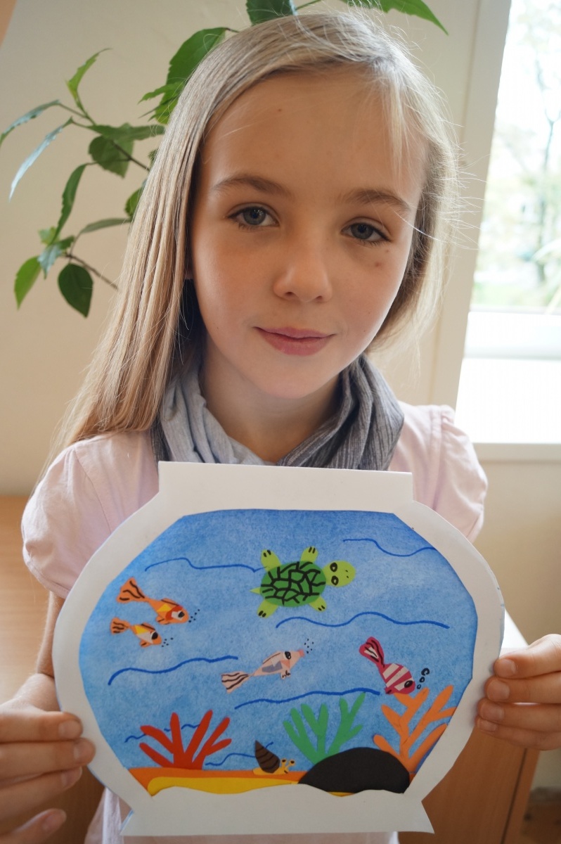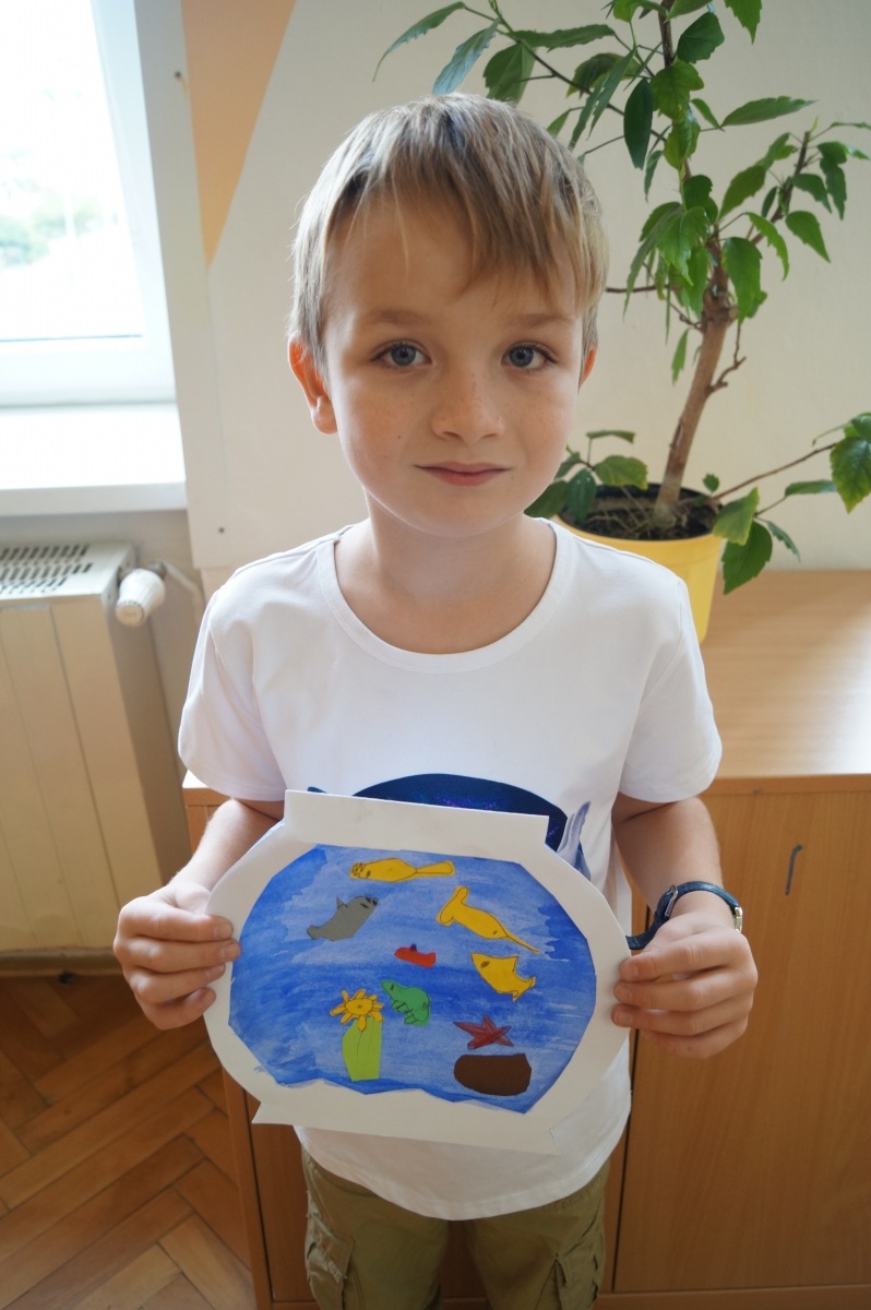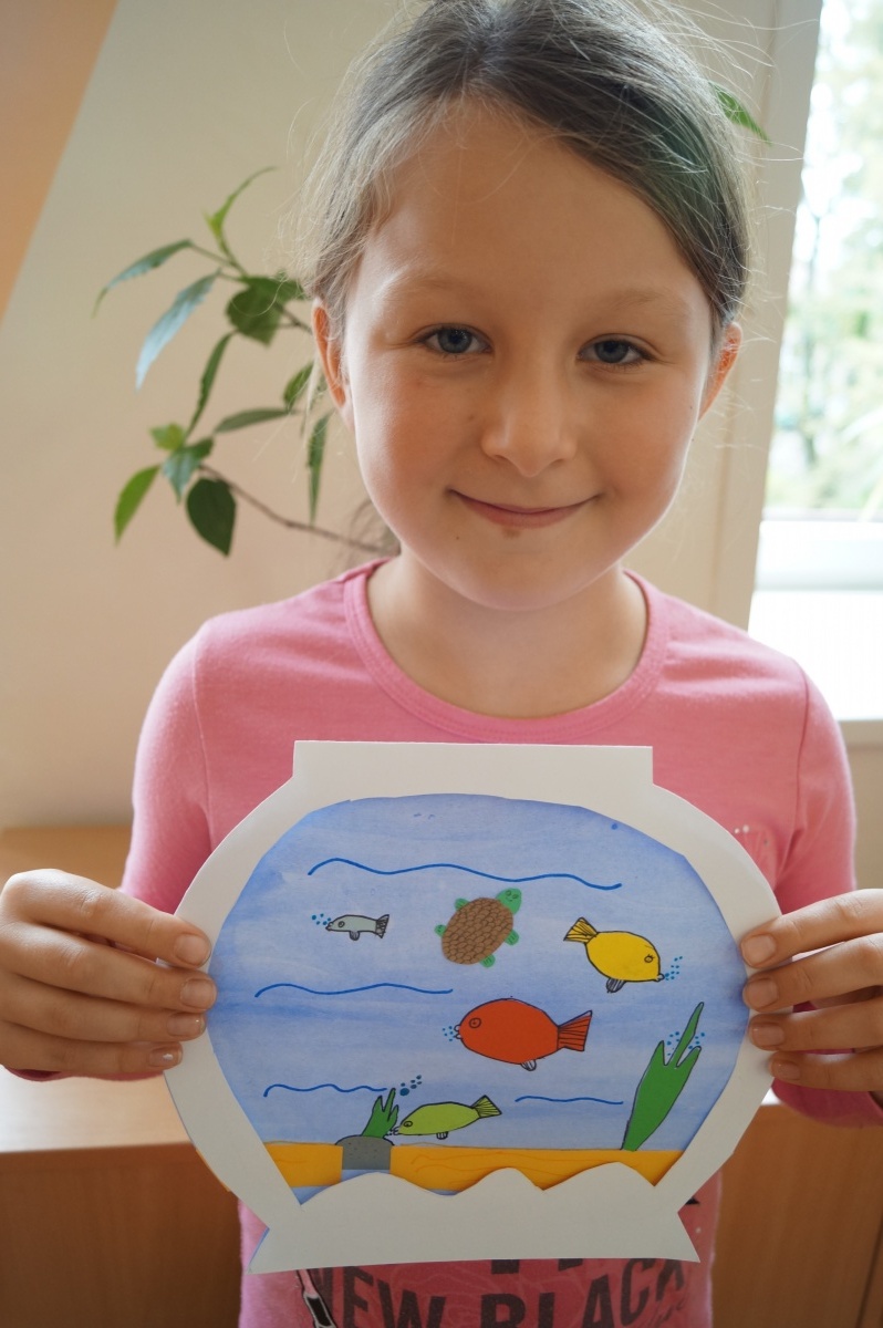 Rybka v akváriu – stříhání, lepení, barvení