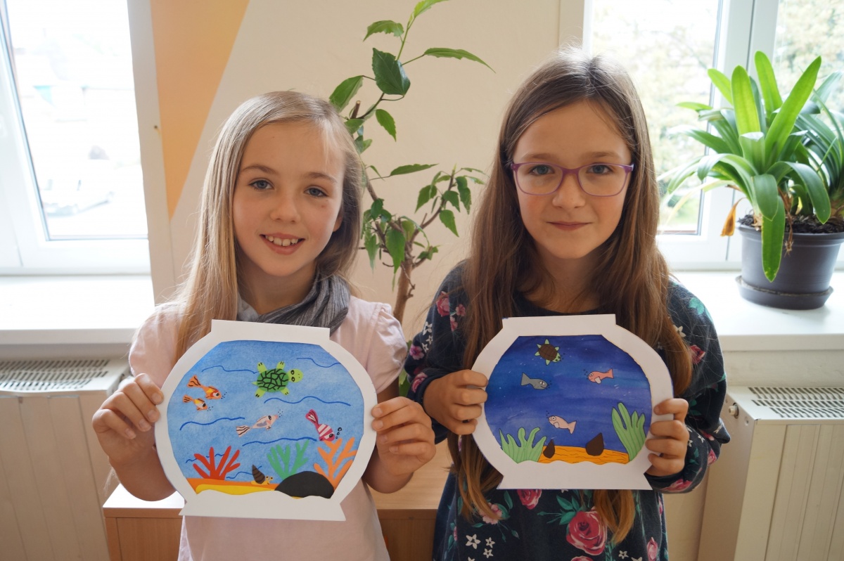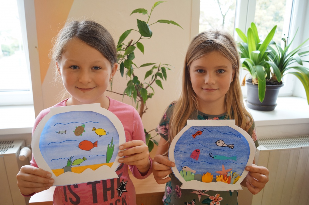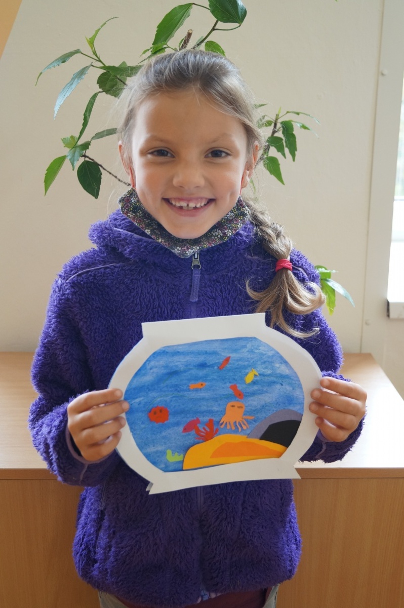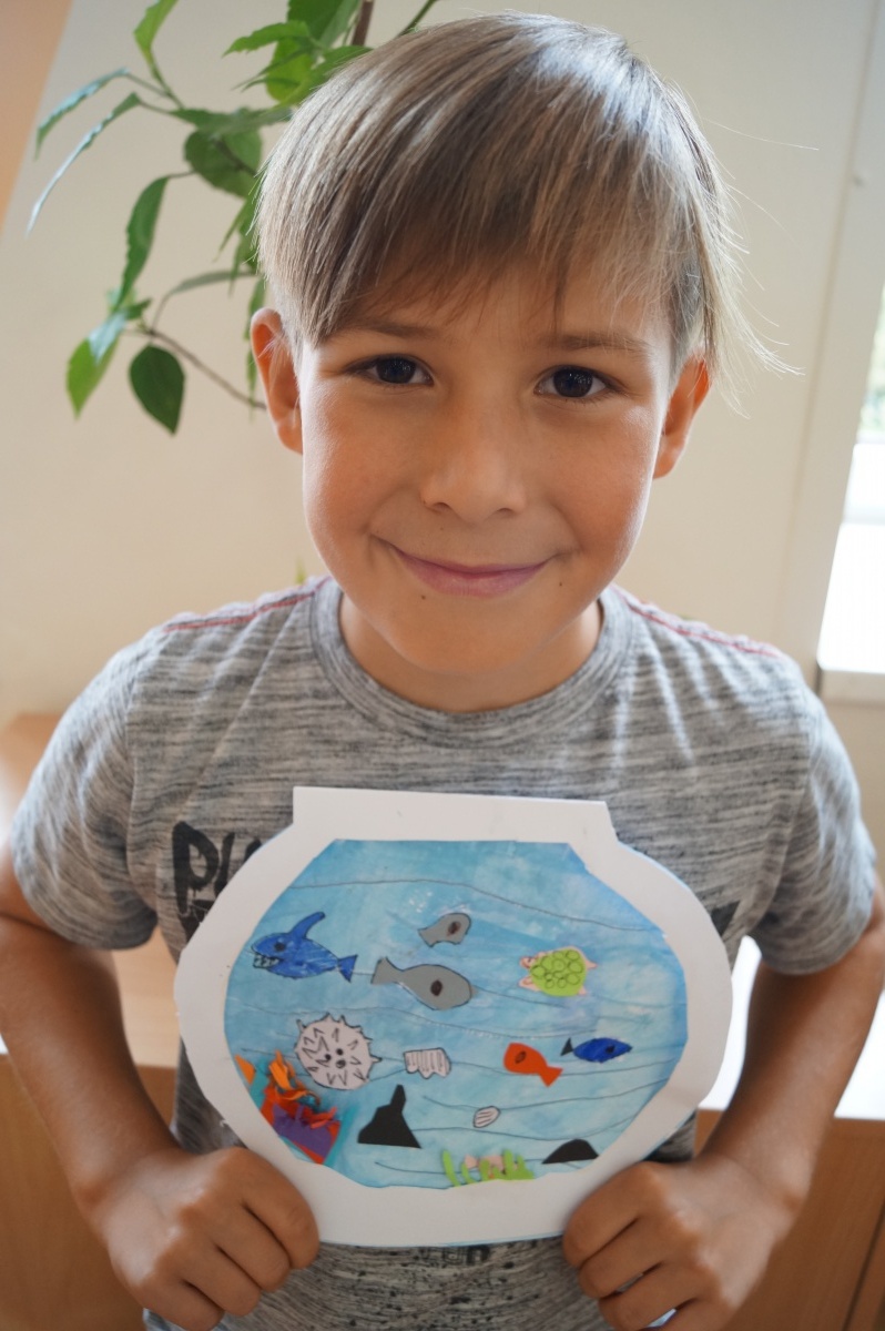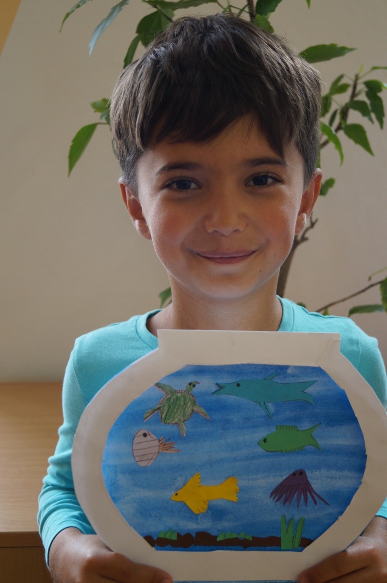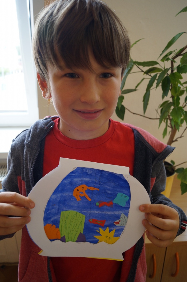 Rybka v akváriu – stříhání, lepení, barvení