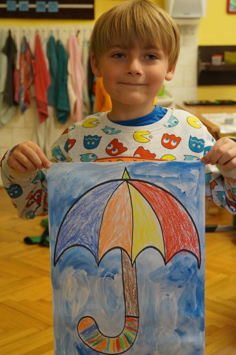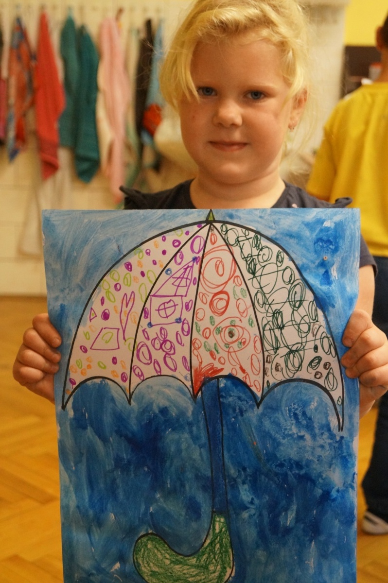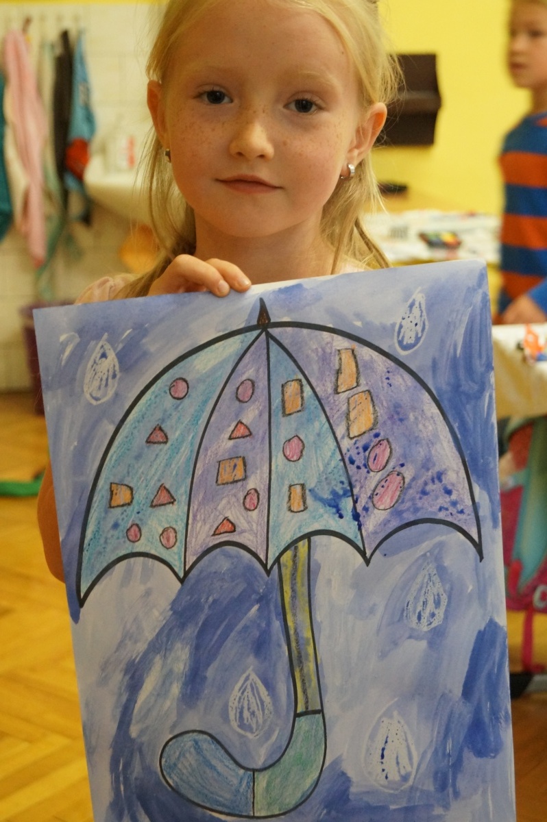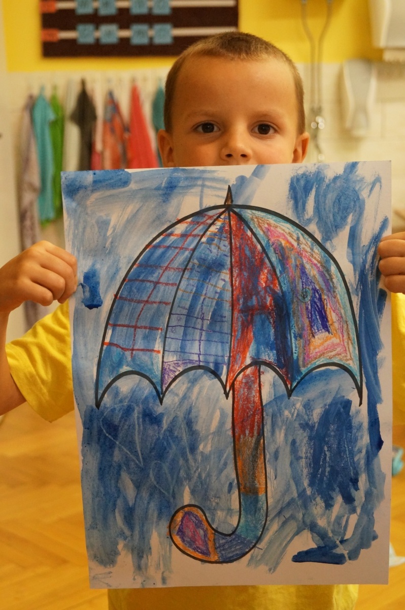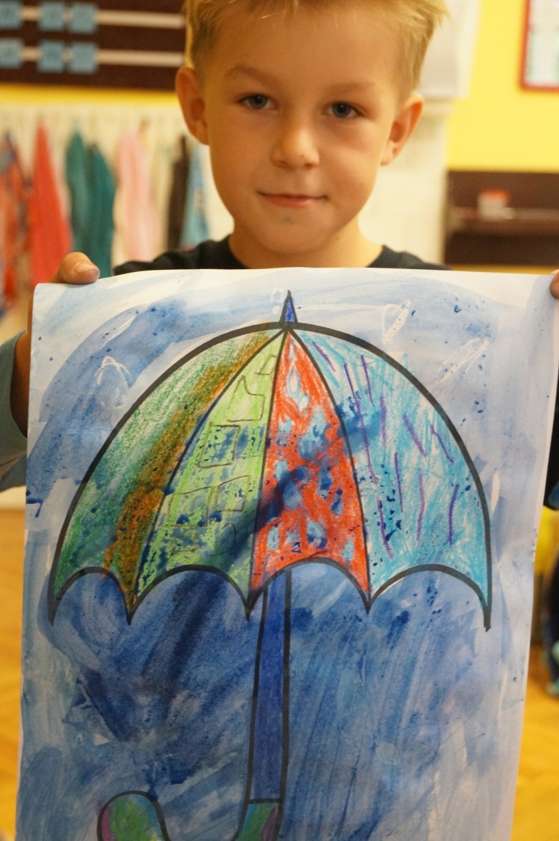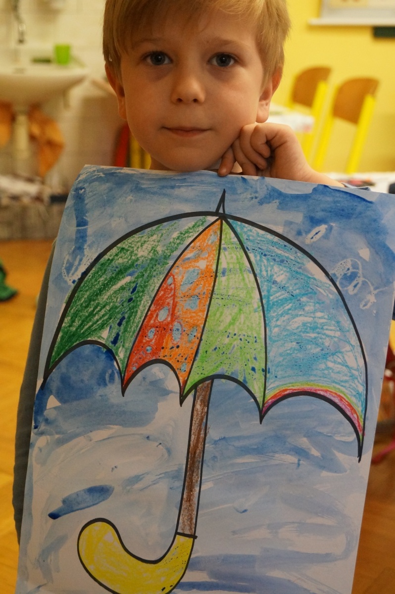 Deštník – práce s voskovkami a vodovými barvami