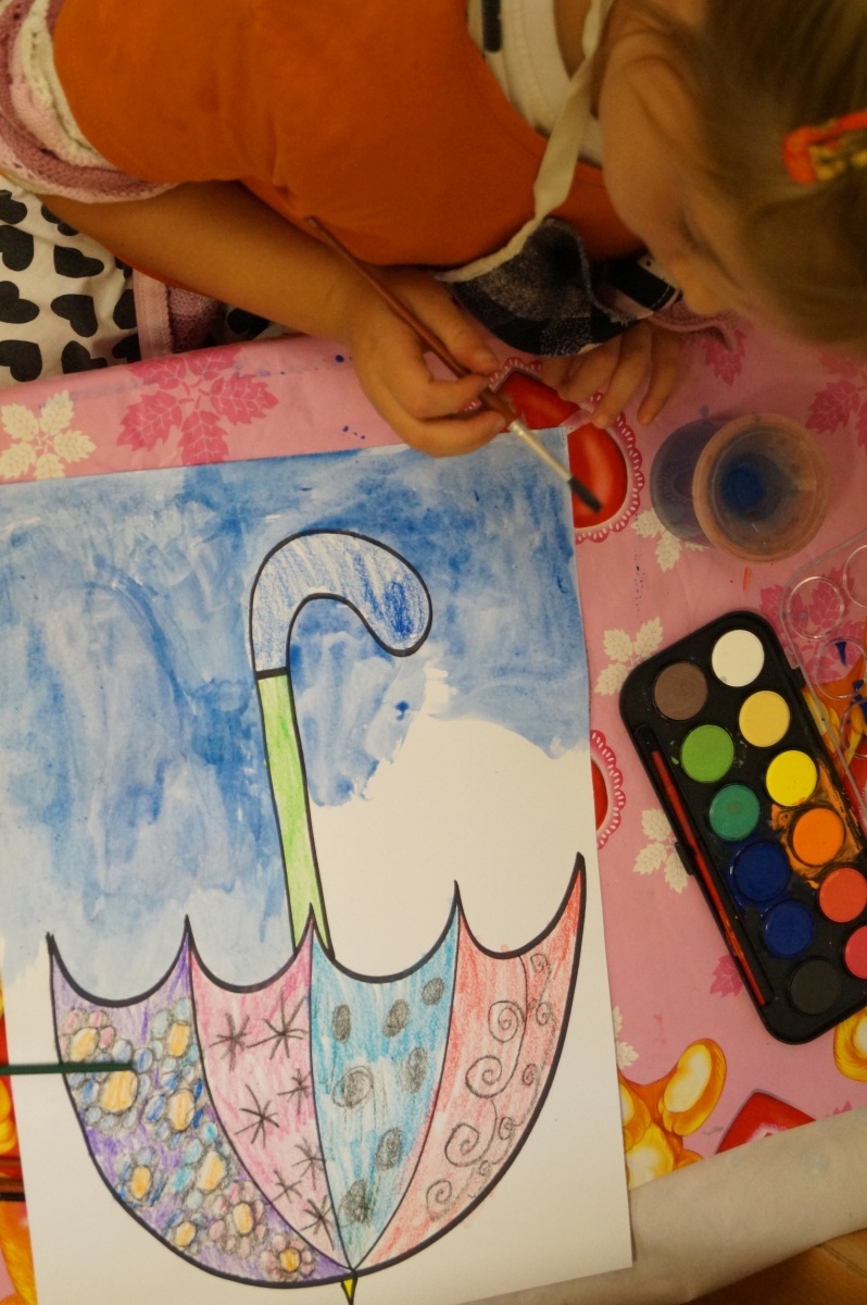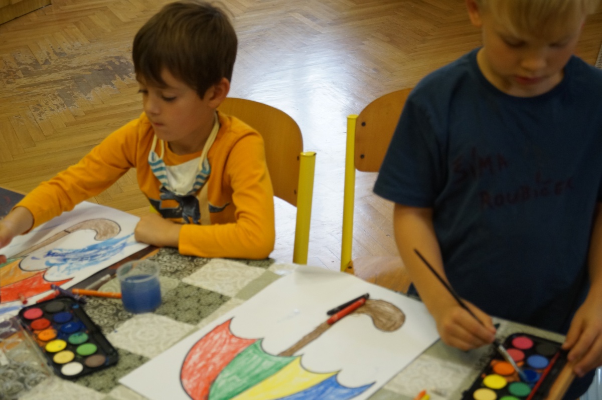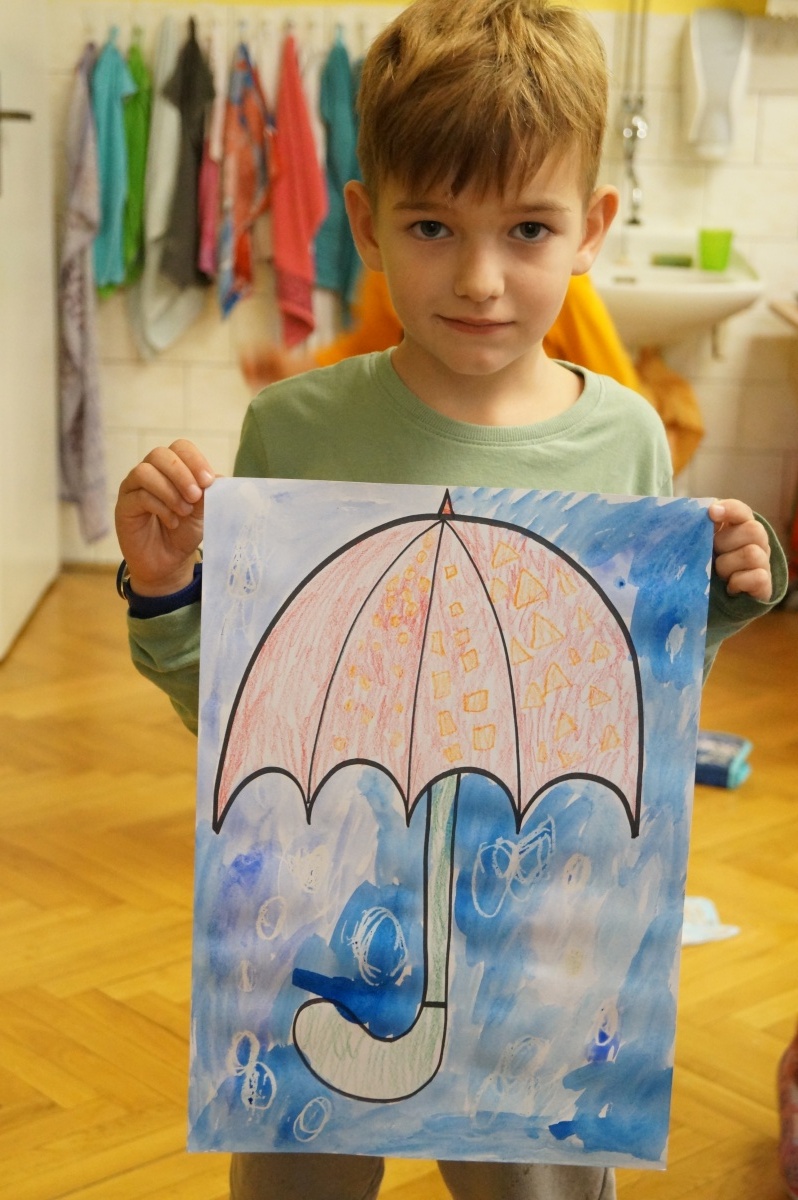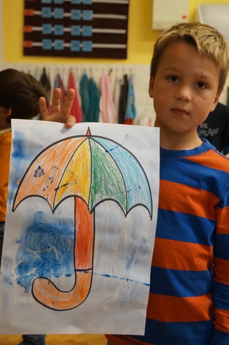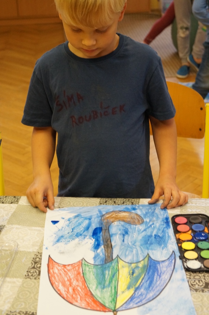 Deštník – práce s voskovkami a vodovými barvami