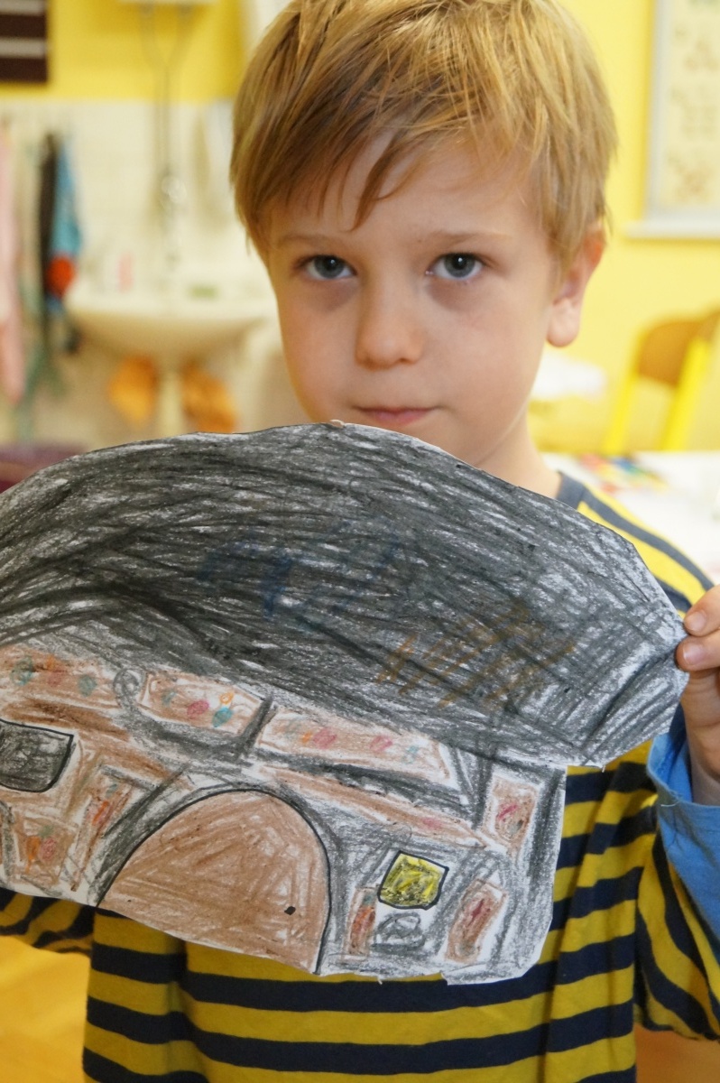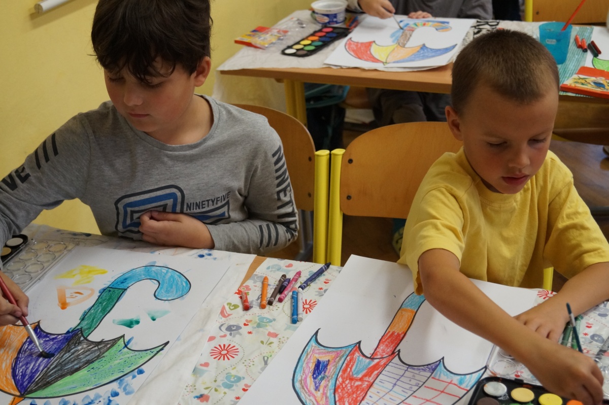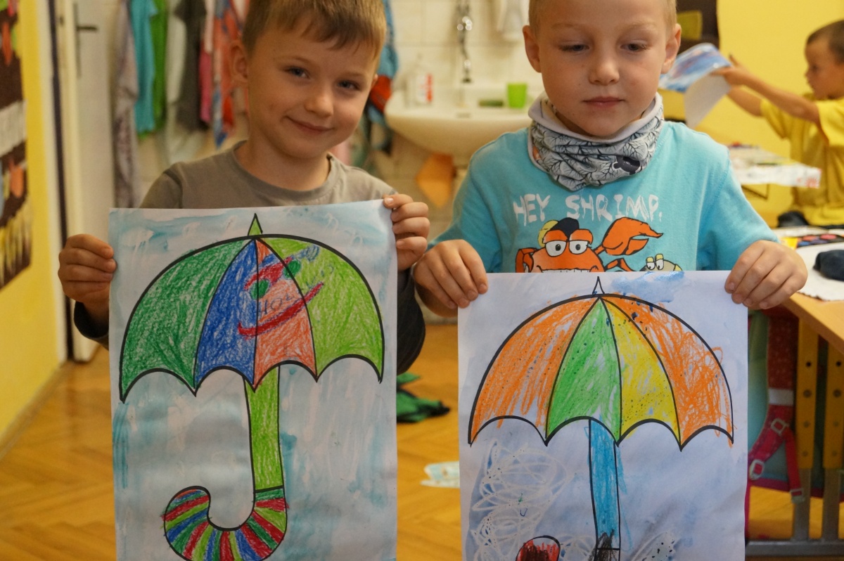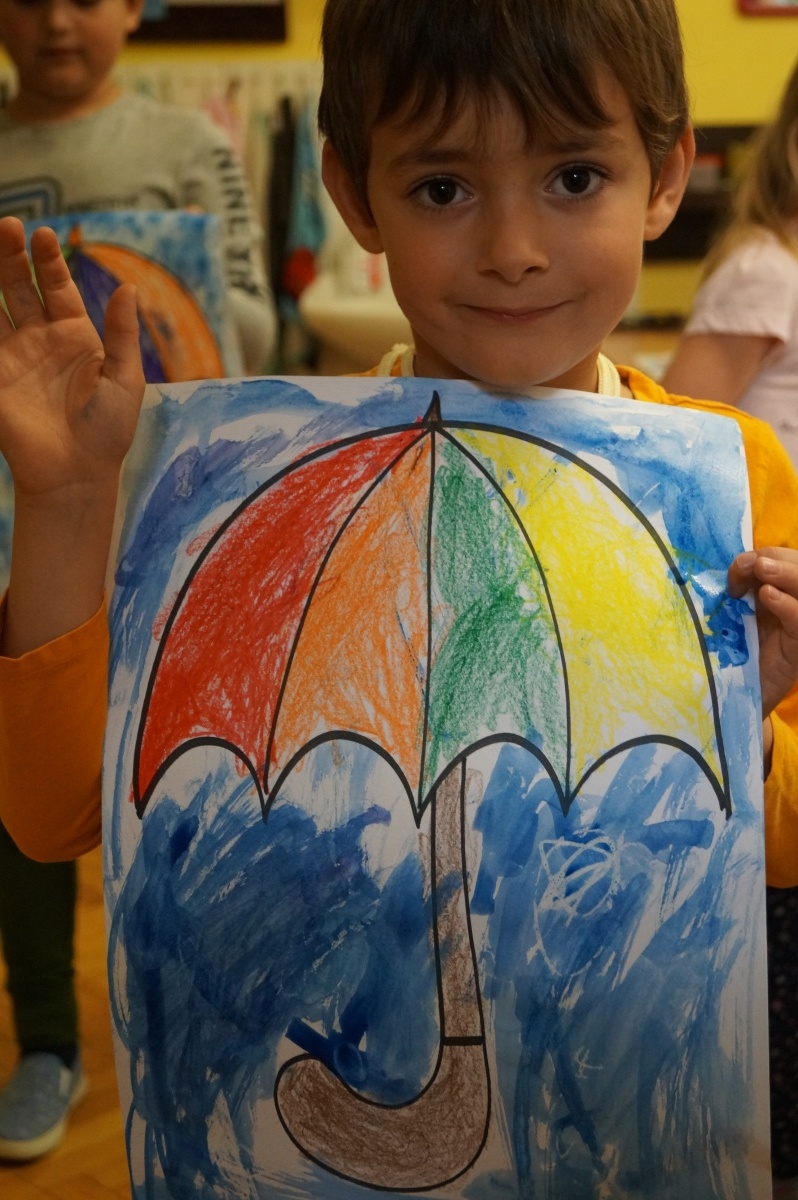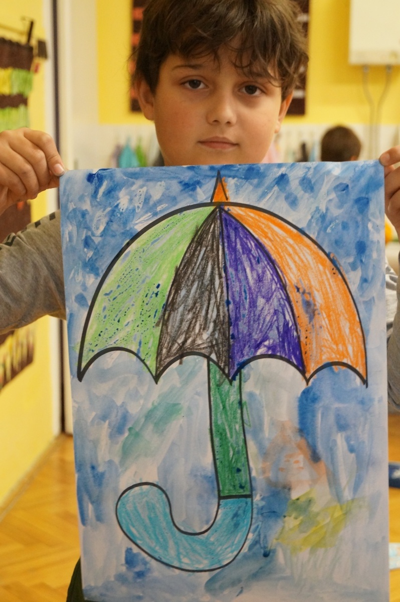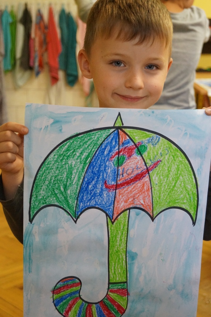 Deštník – práce s voskovkami a vodovými barvami