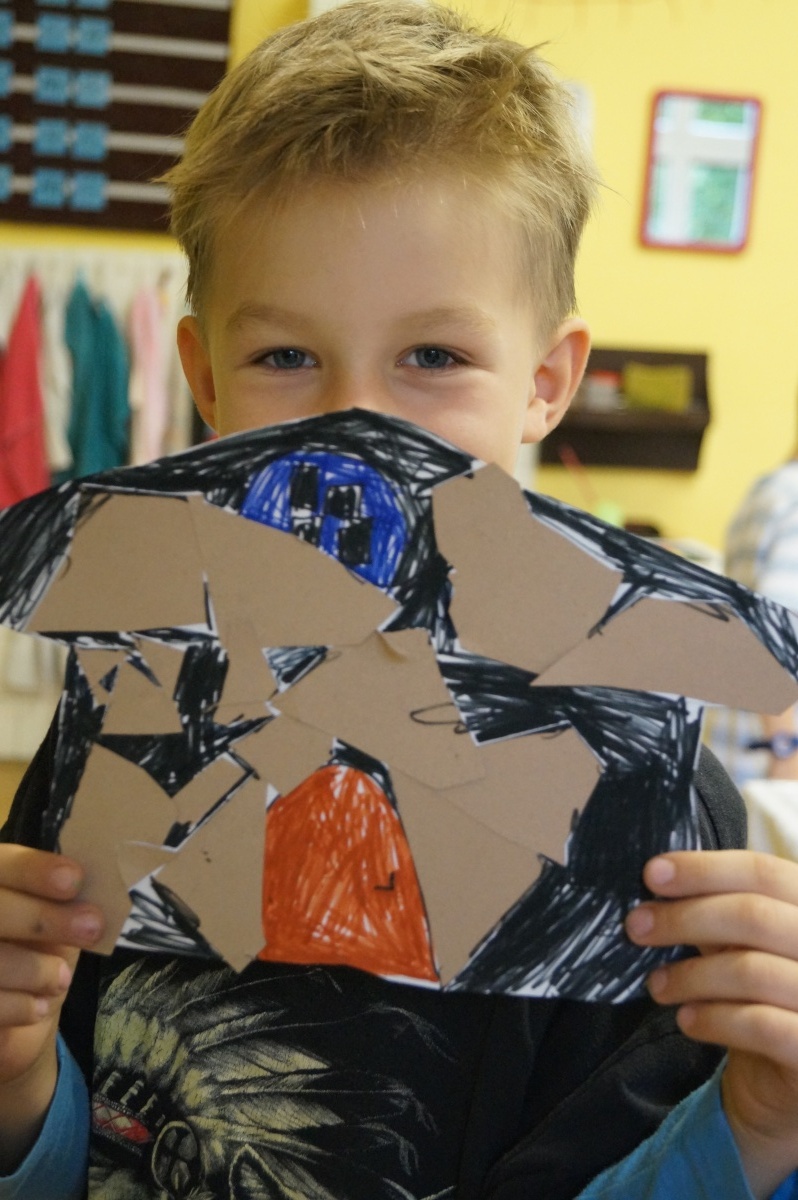 Strašidýlko – provázek, barevný papír, lepení, vystřihování