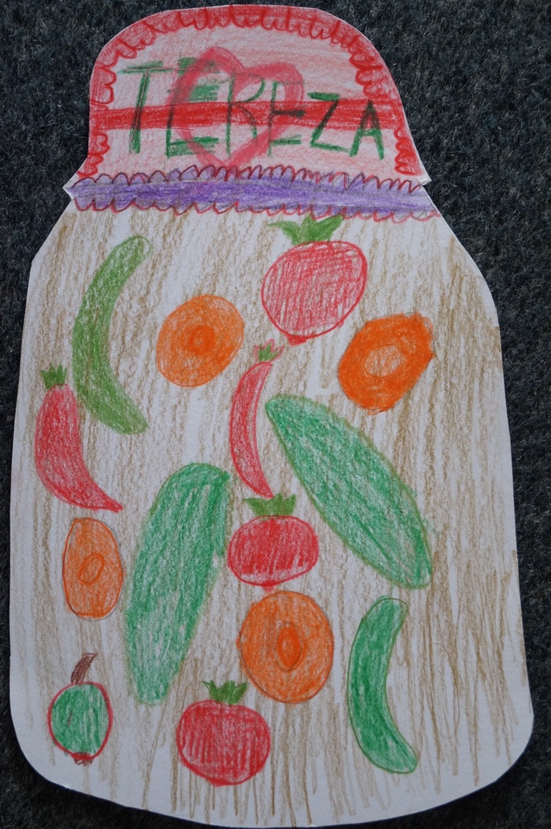 Podzimní úroda – sklenice s ovocem a zeleninou
