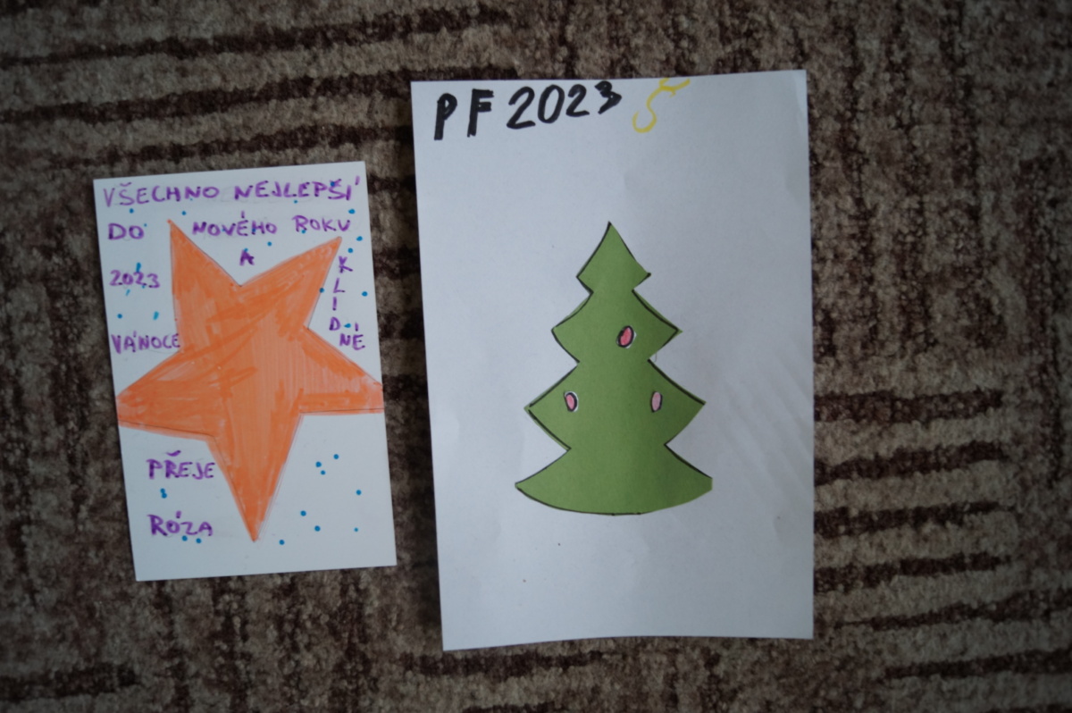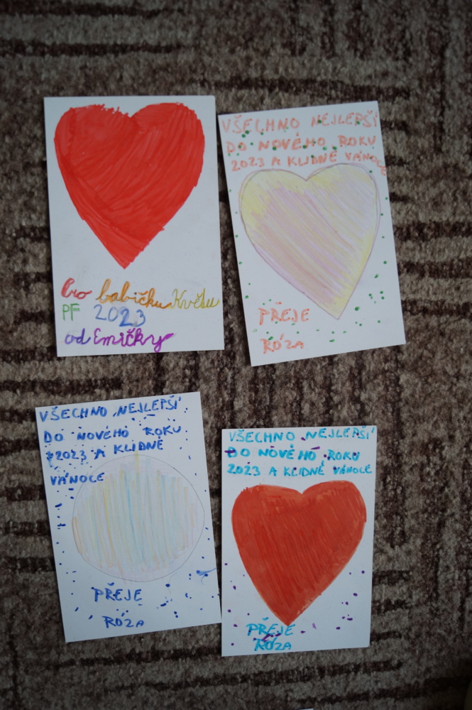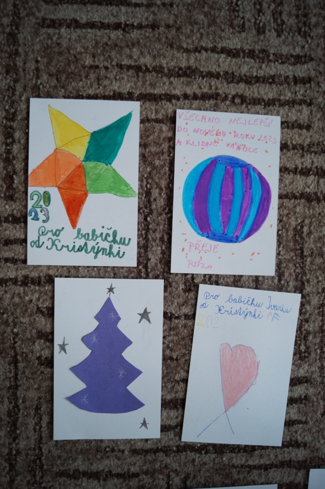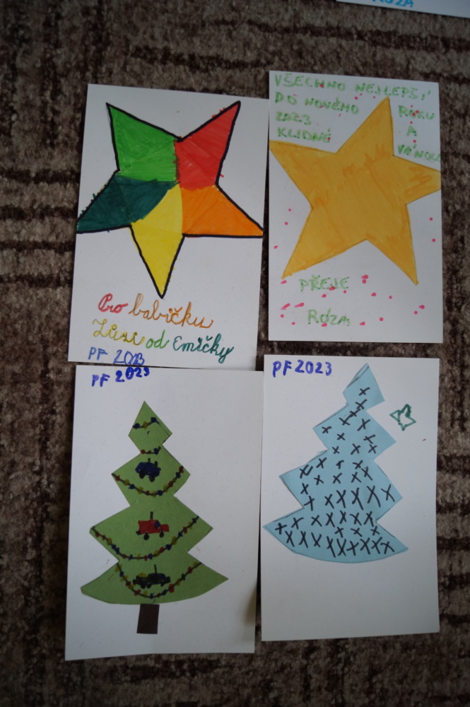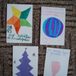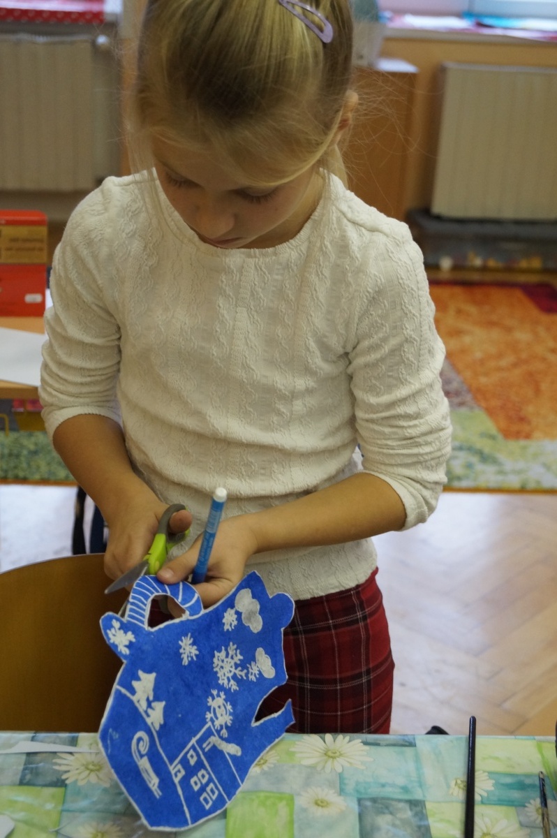 Vánoční obrázek na kartonu – barvení ,stříhání, lepení