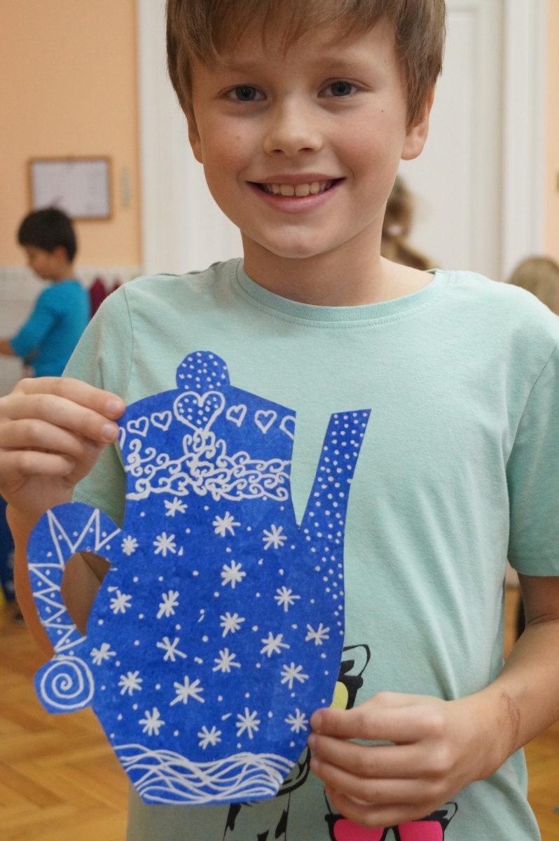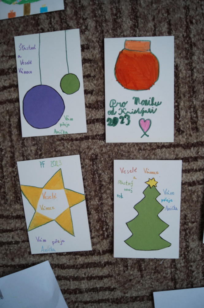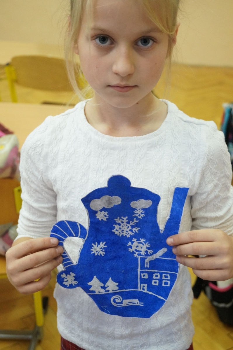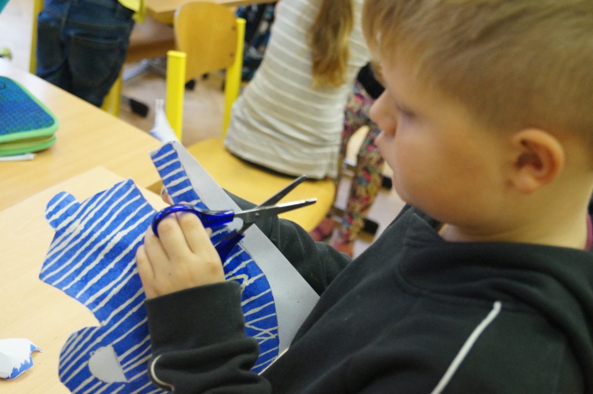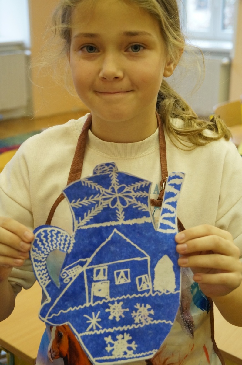 Vánoční obrázek na kartonu – barvení ,stříhání, lepení
