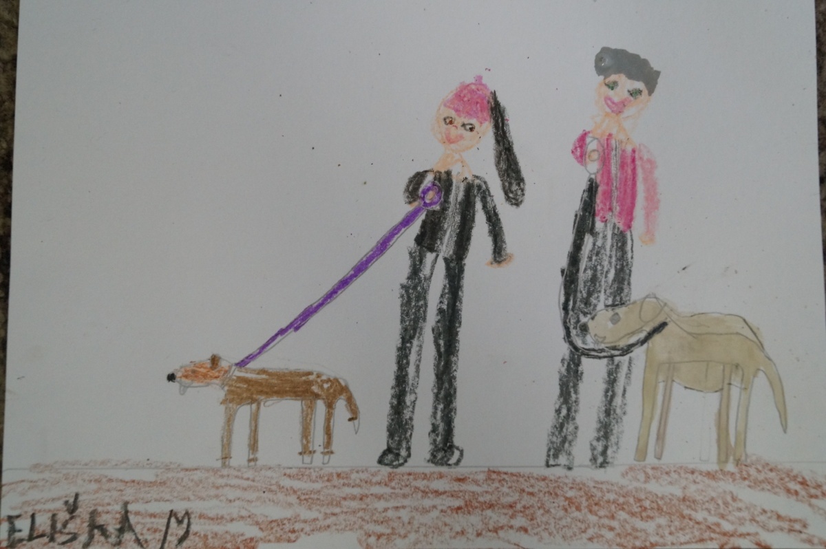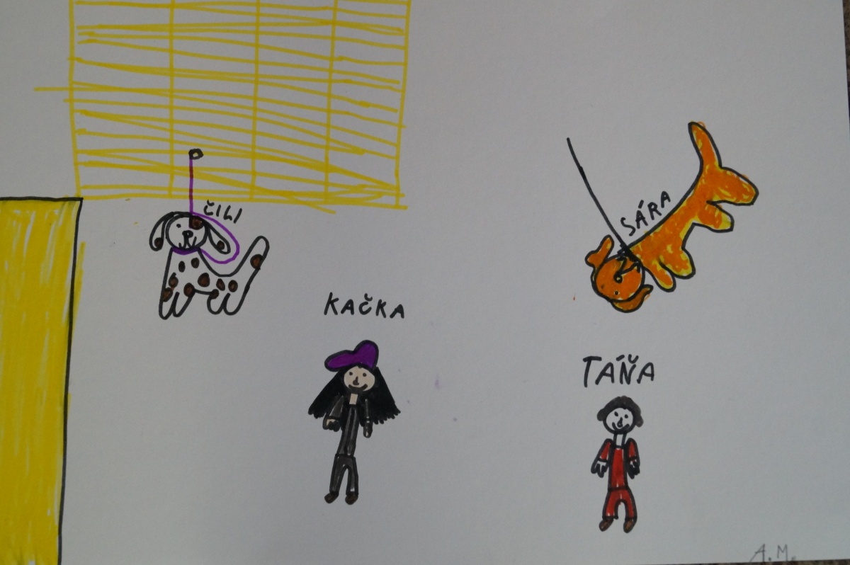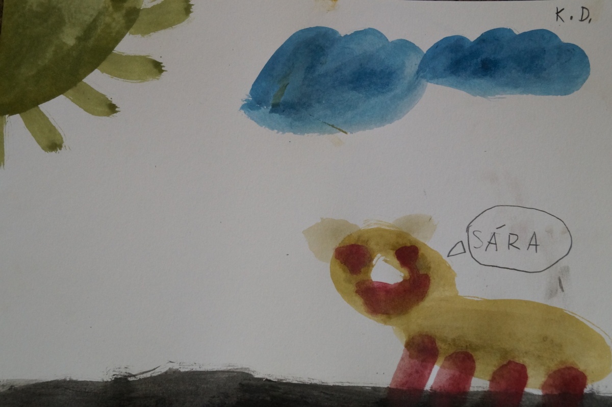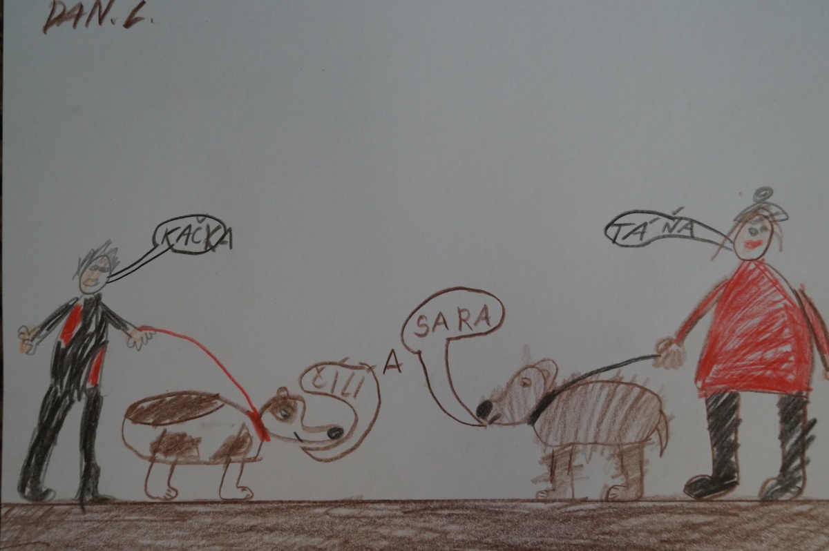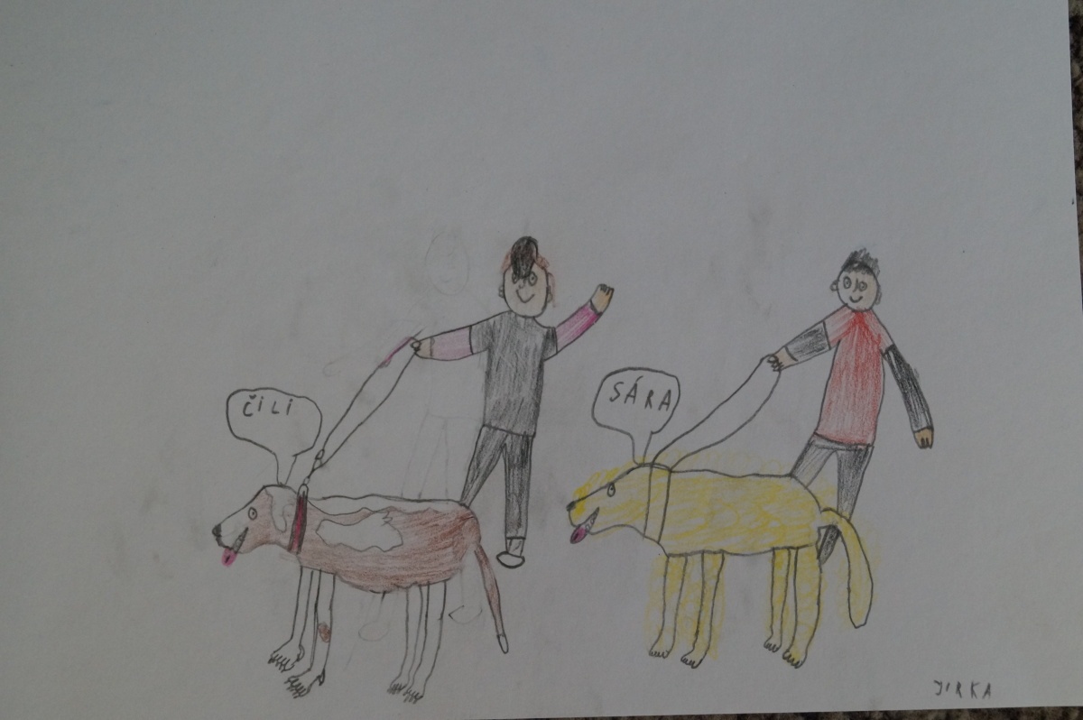 „Beseda o psovi“ malba vodovkami, kresba pastelkami