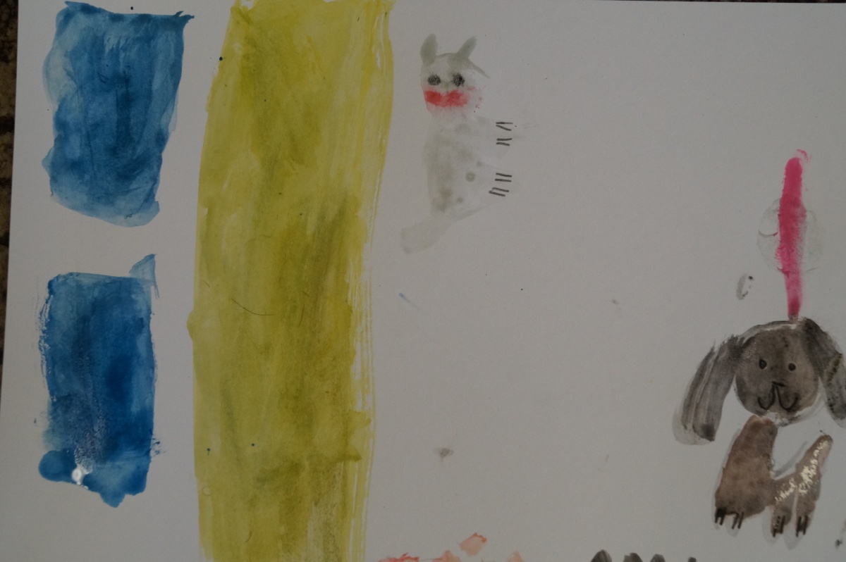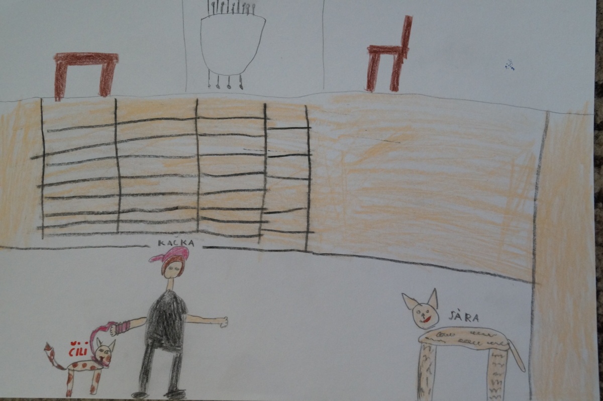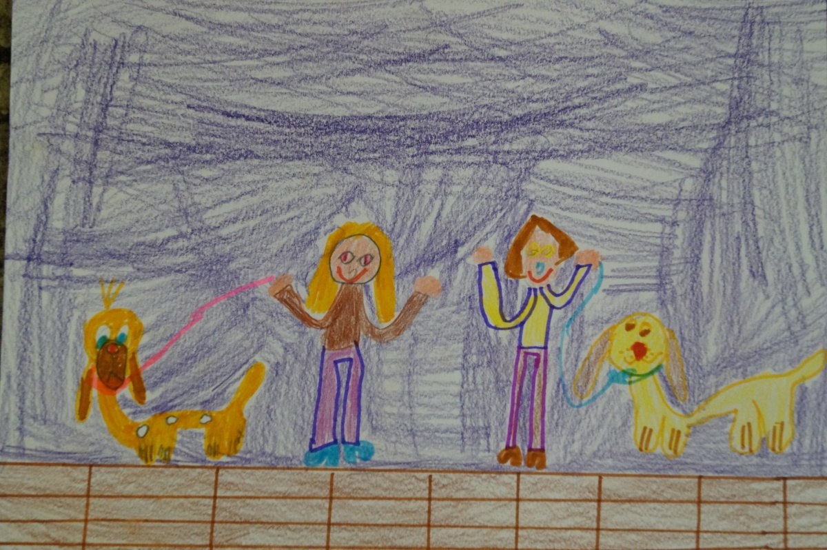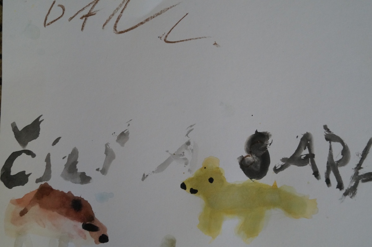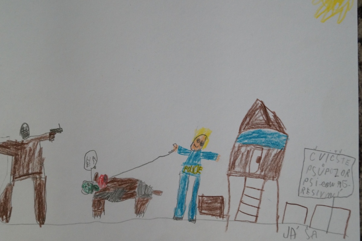 „Beseda o psovi“ malba vodovkami, kresba pastelkami