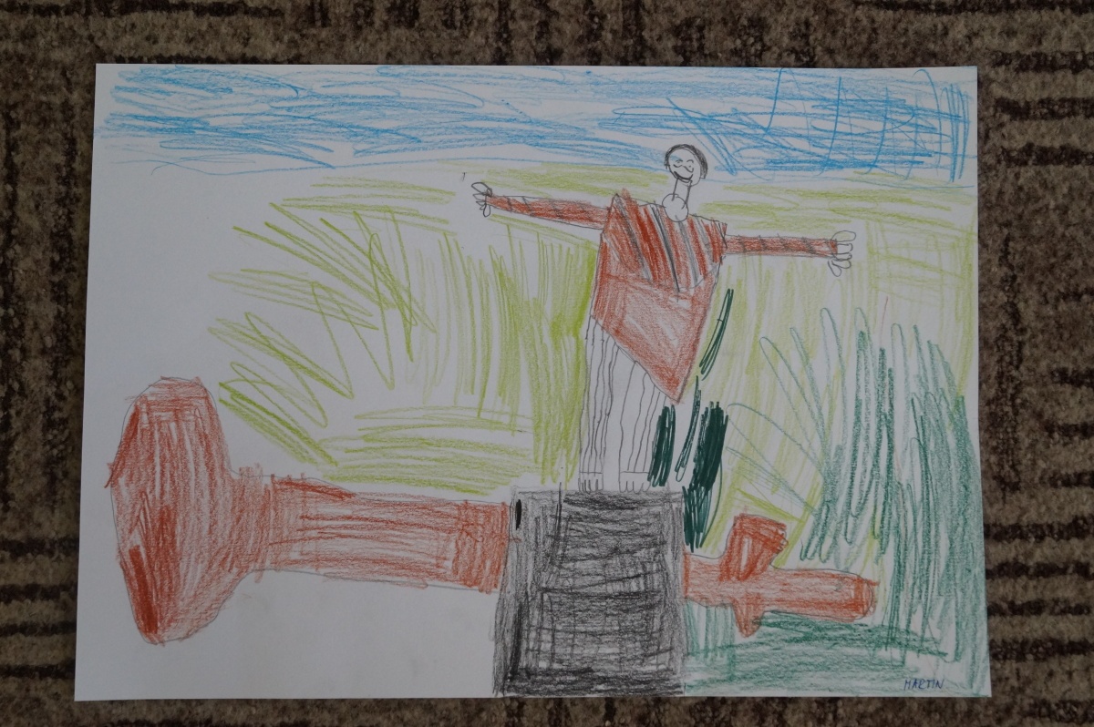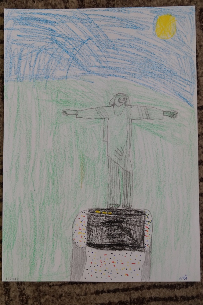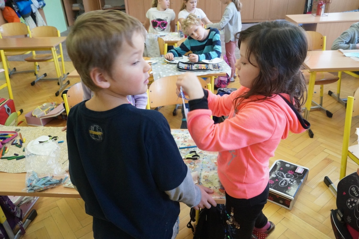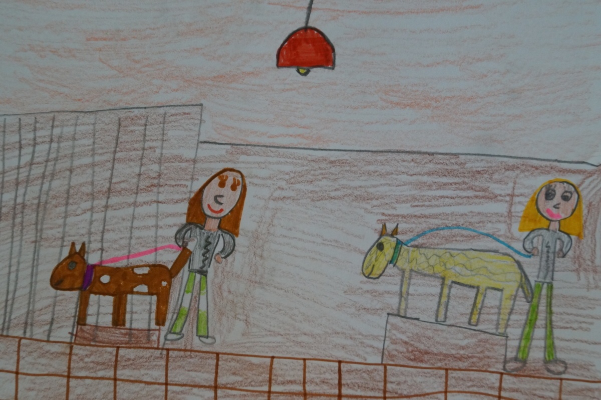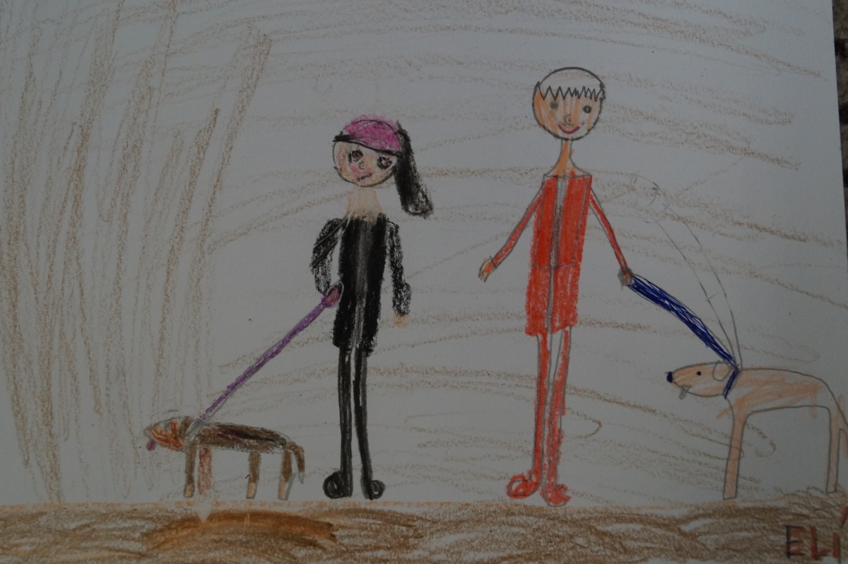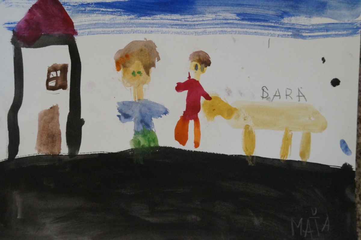 „Beseda o psovi“ malba vodovkami, kresba pastelkami
