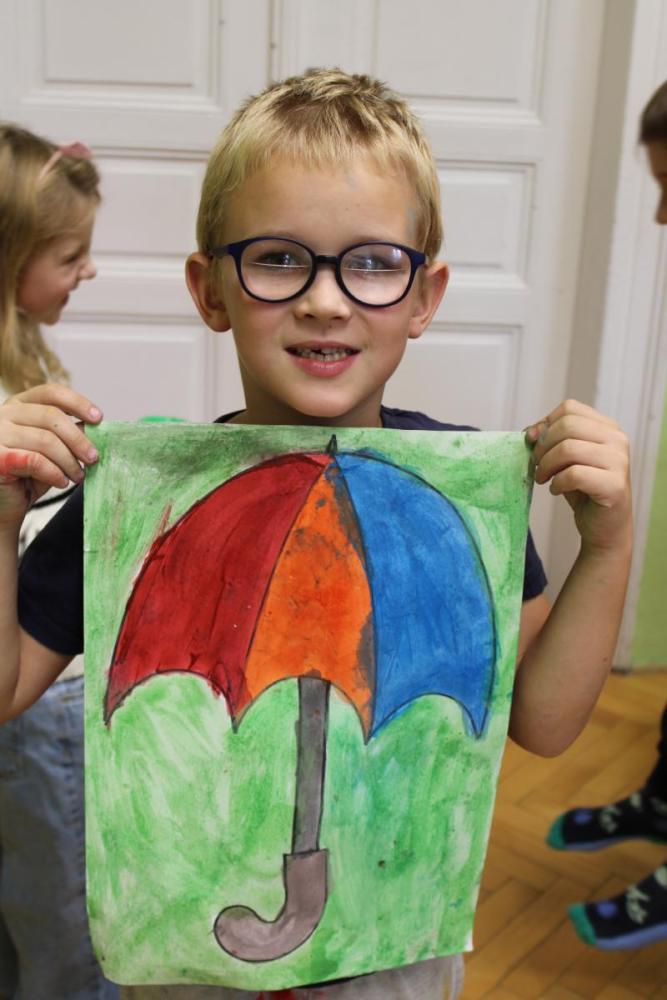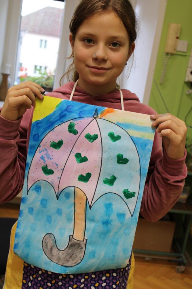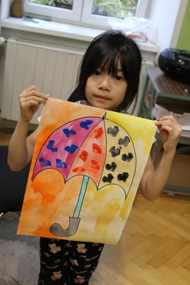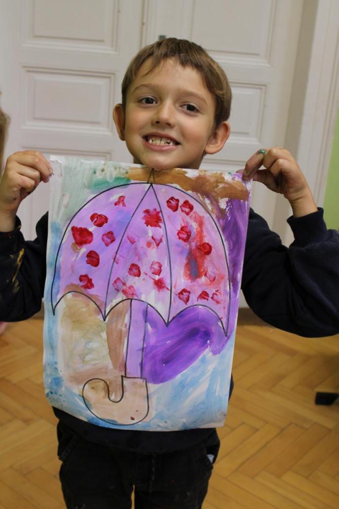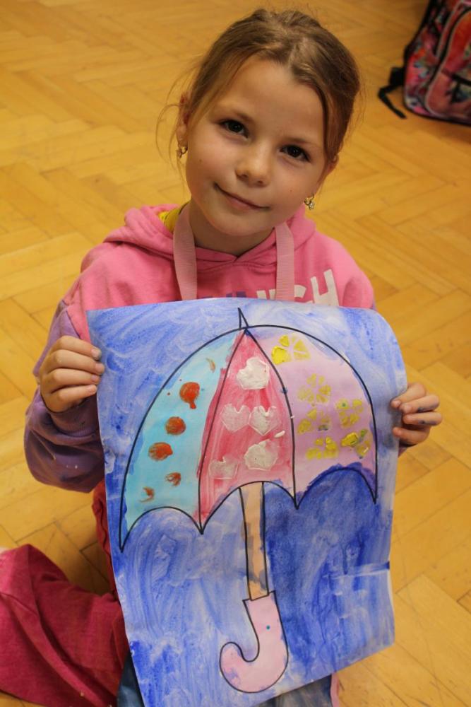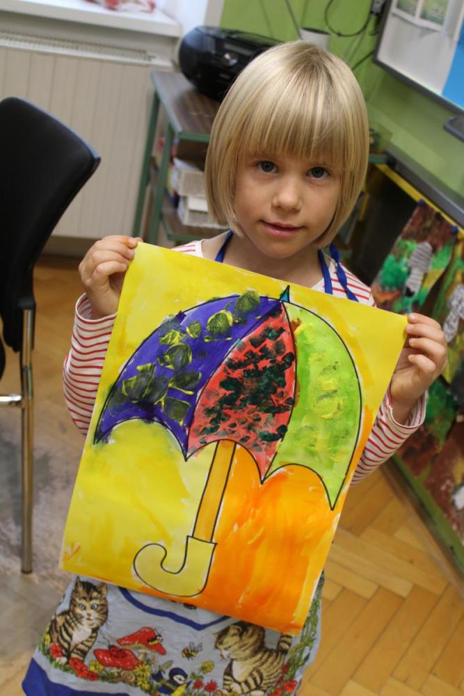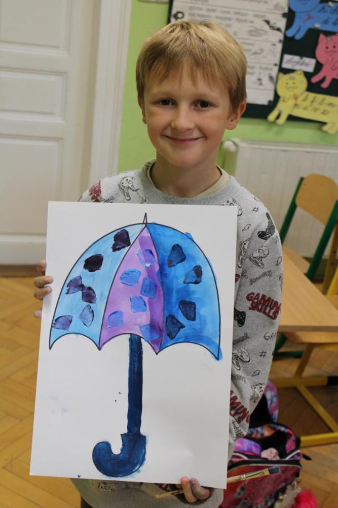 Deštník – vodové barvy, bramborová tiskátka a tempera
