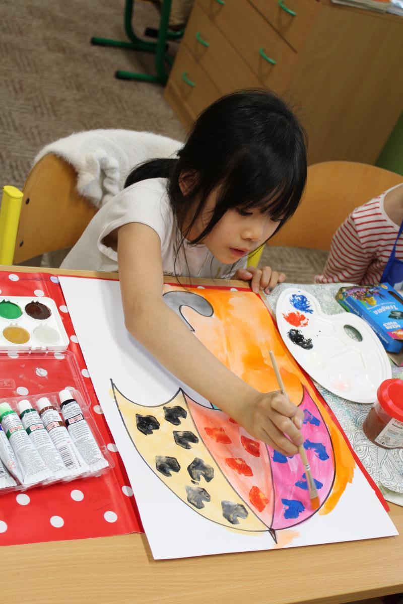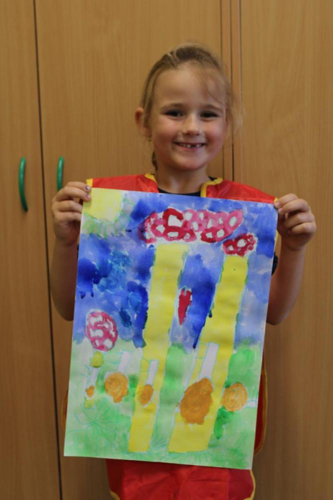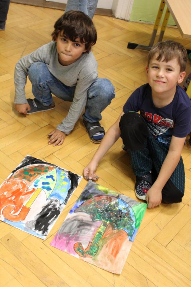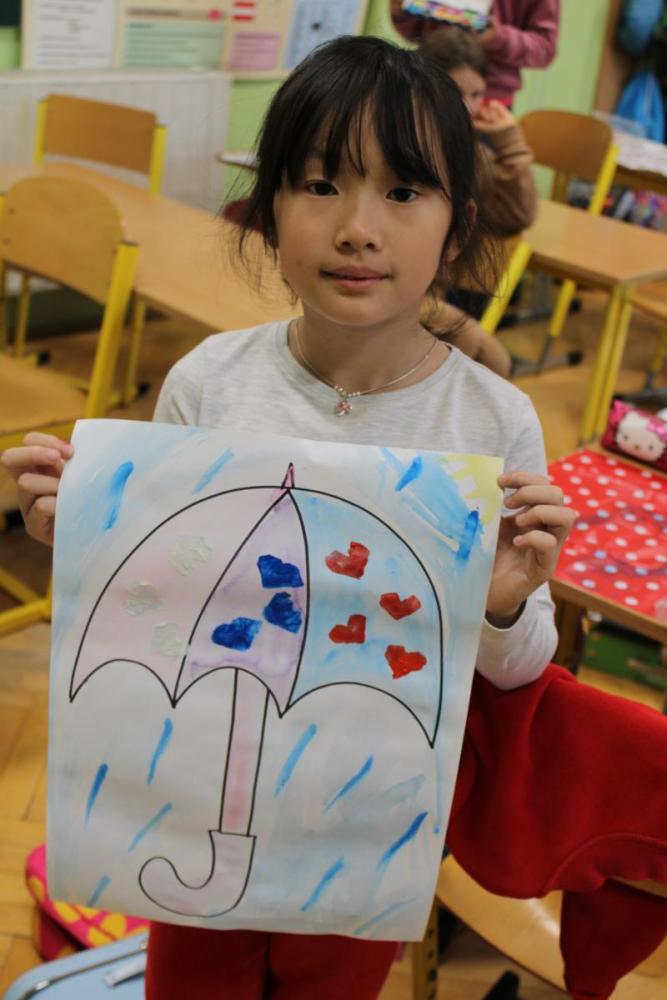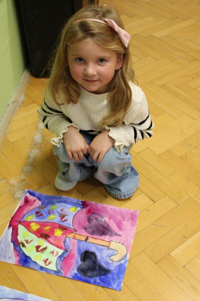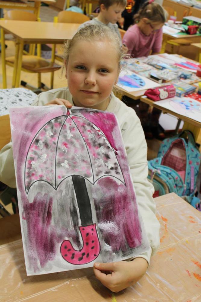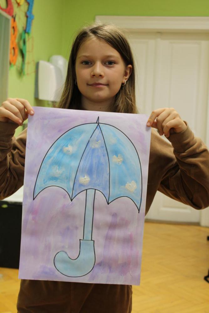 Deštník – vodové barvy, bramborová tiskátka a tempera